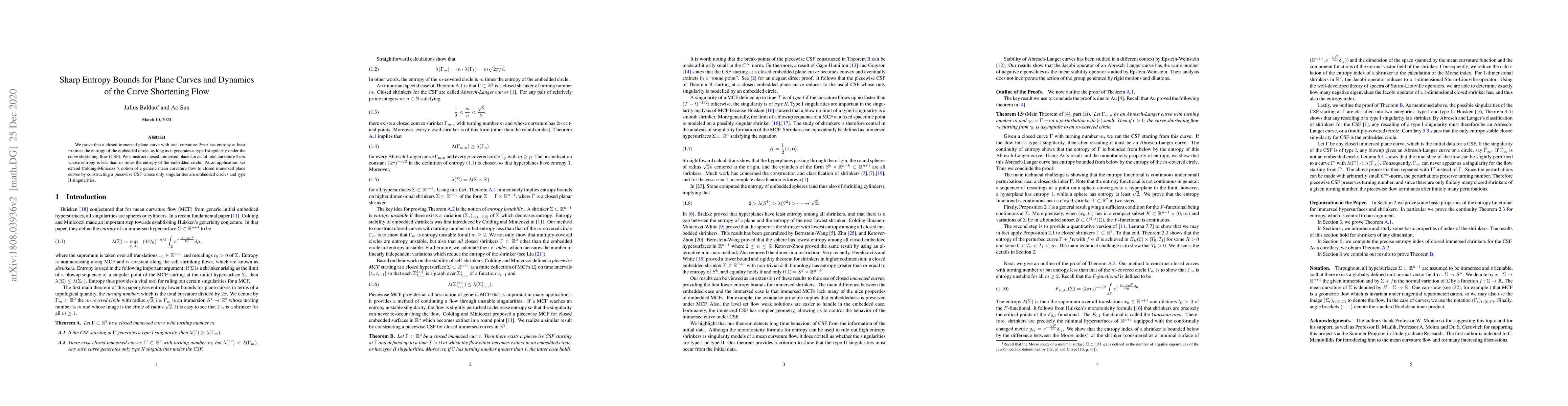 This paper establishes sharp entropy bounds for closed immersed plane curves under curve shortening flow, proving that such curves with total curvature $2\pi m$ have entropy at least $m$ times the entropy of an embedded circle, and constructs examples where the entropy is strictly lower. The study also extends the generic mean curvature flow to these curves, introducing a piecewise flow with only embedded circles and type II singularities.