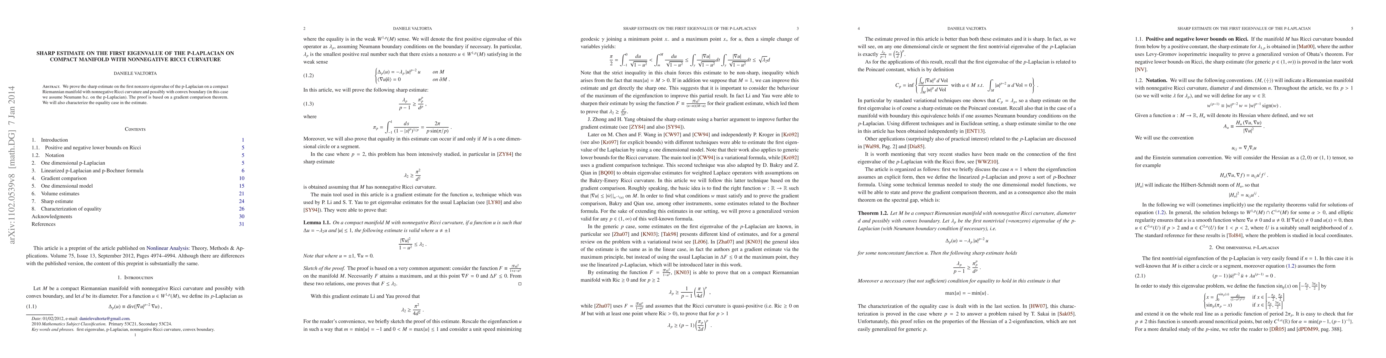 This paper proves a sharp estimate for the first nonzero eigenvalue of the p-Laplacian on compact Riemannian manifolds with nonnegative Ricci curvature, utilizing a gradient comparison theorem. It also characterizes scenarios where the estimate reaches equality.