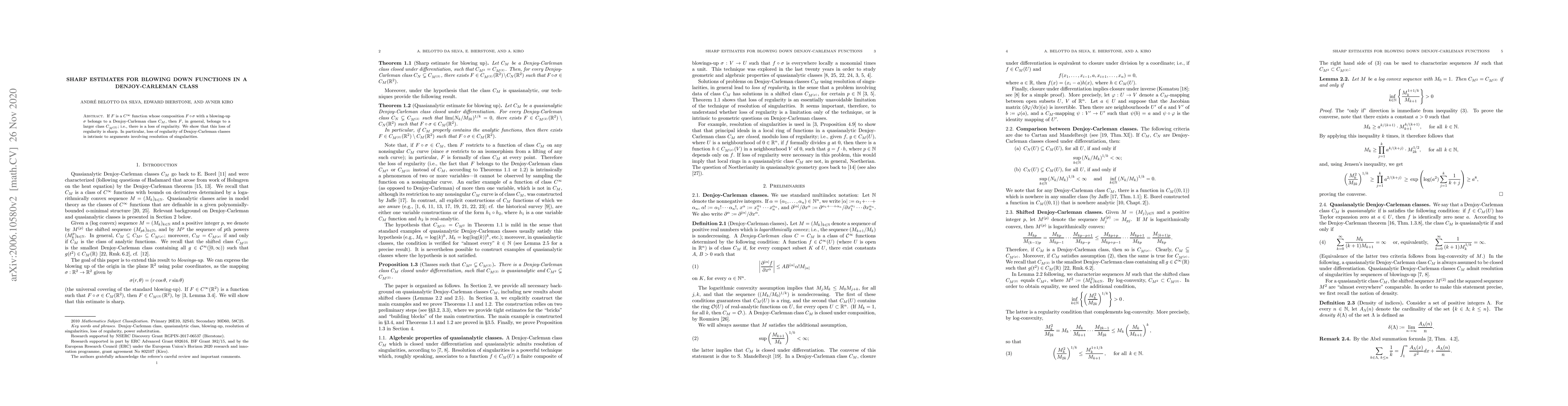 If F is an infinitely differentiable function whose composition with a blowing-up belongs to a Denjoy-Carleman class C_M (determined by a log convex sequence M=(M_k)), then F, in general, belongs to a larger shifted class C_N, where N_k = M_2k; i.e., there is a loss of regularity. We show that this loss of regularity is sharp. In particular, loss of regularity of Denjoy-Carleman classes is intrinsic to arguments involving resolution of singularities.