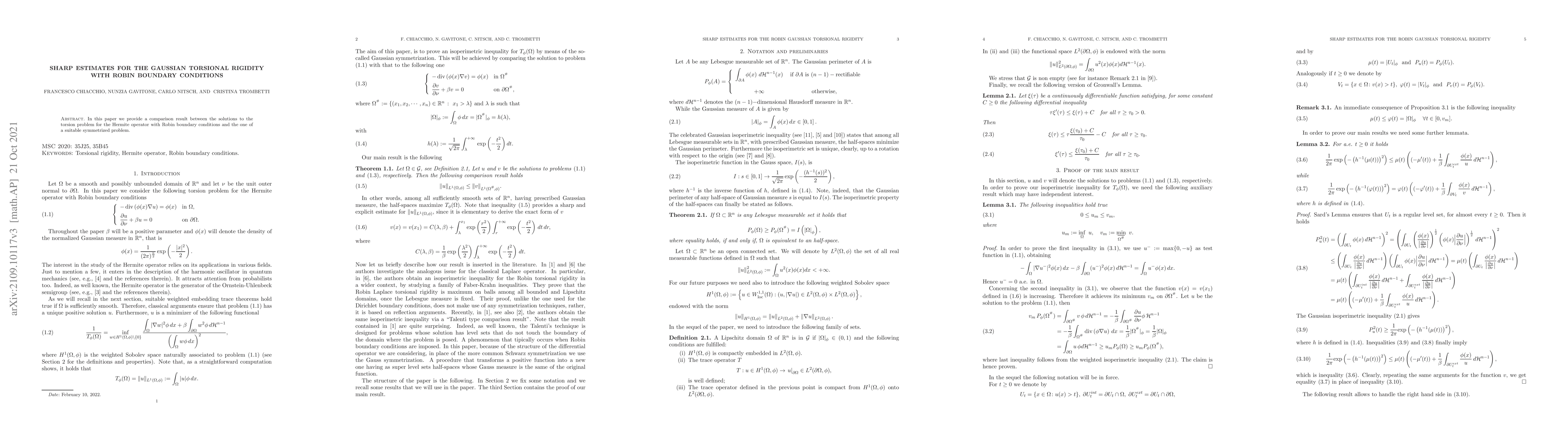 Summary: This paper establishes a comparison result for the torsion problem involving the Hermite operator under Robin boundary conditions, showing how its solution relates to a symmetrized version of the problem. Sharp estimates for the Gaussian torsional rigidity are provided.