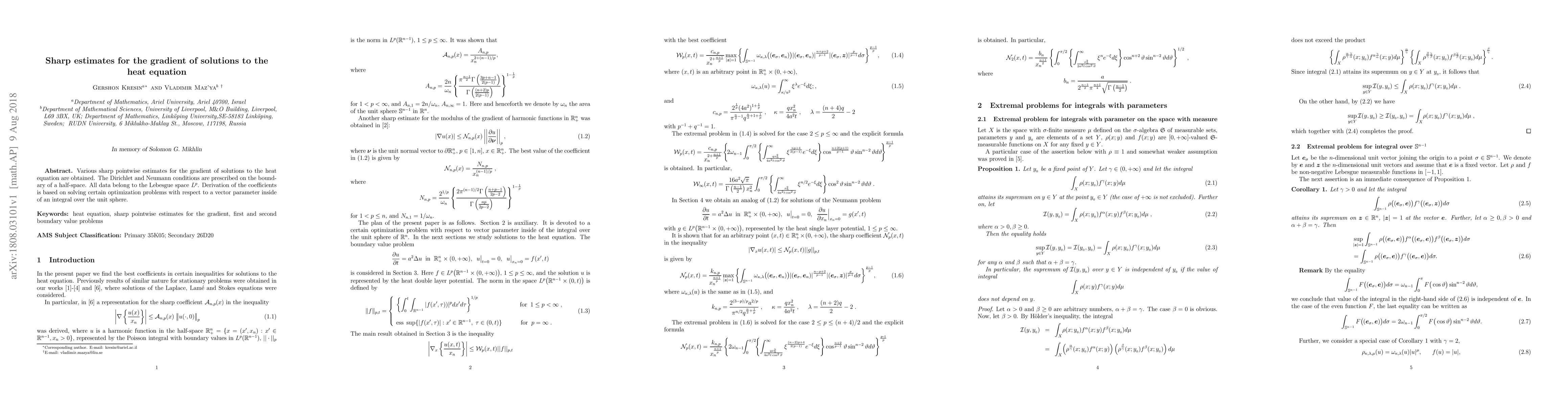Researchers derived sharp estimates for the gradient of solutions to the heat equation with specific boundary conditions, using optimization problems over a unit sphere.