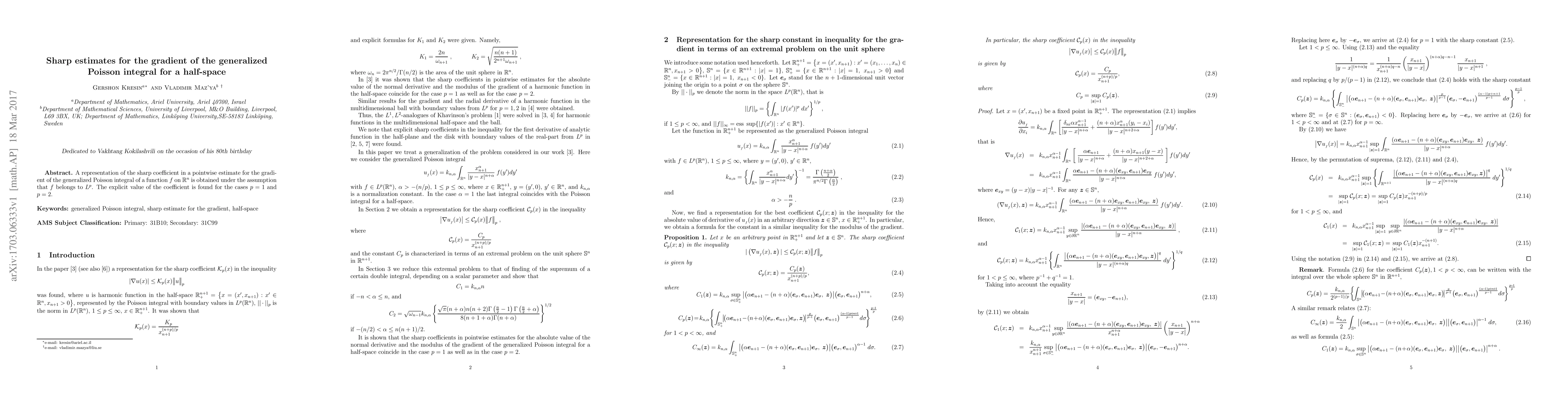 A new estimate for the gradient of a generalized Poisson integral is found for functions in L^p space, with explicit values given for p=1 and p=2.
