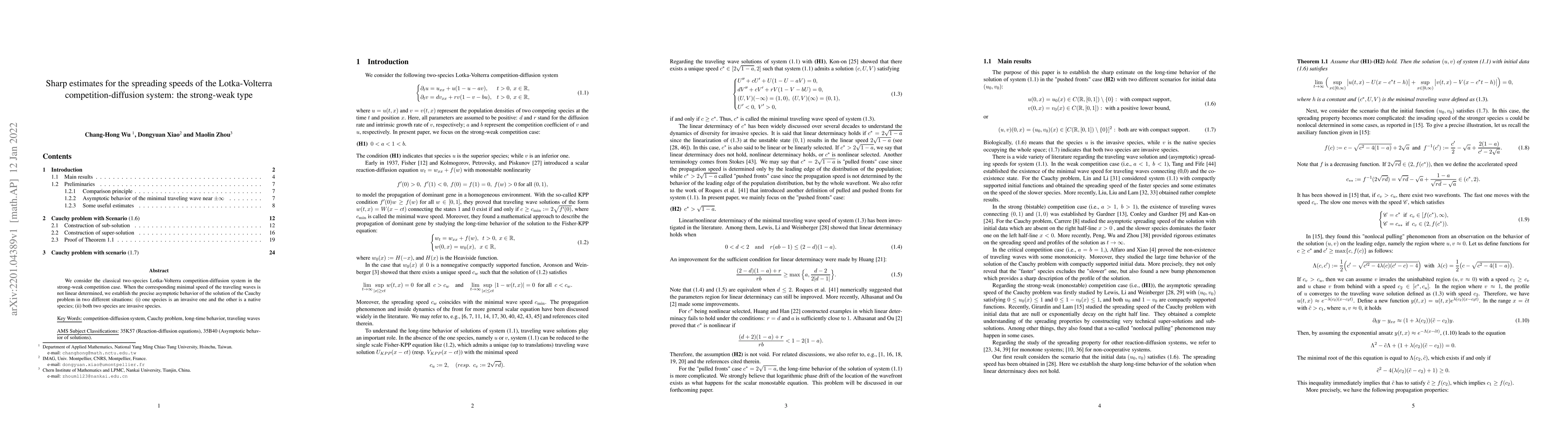 This paper provides sharp estimates for the spreading speeds of the Lotka-Volterra competition-diffusion system under strong-weak competition. It establishes precise asymptotic behaviors for solutions in scenarios where one species is invasive and the other is native, and when both species are invasive.