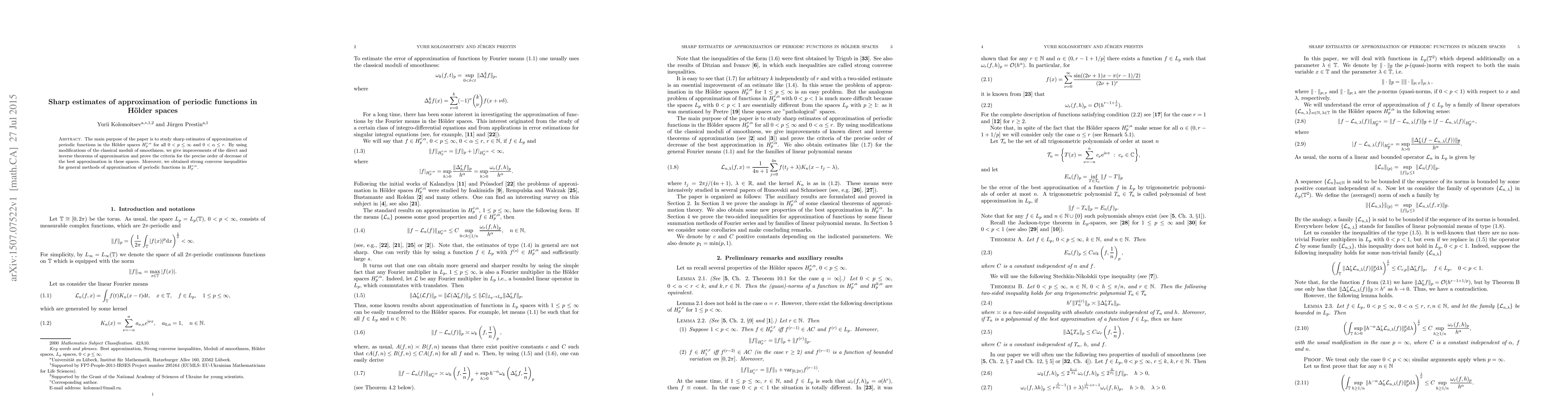 This paper provides sharp estimates for the approximation of periodic functions in H\"older spaces $H_p^{r,\alpha}$, improving both direct and inverse theorems using modified moduli of smoothness. It also establishes criteria for the precise order of the best approximation decrease and proves strong converse inequalities for general approximation methods.