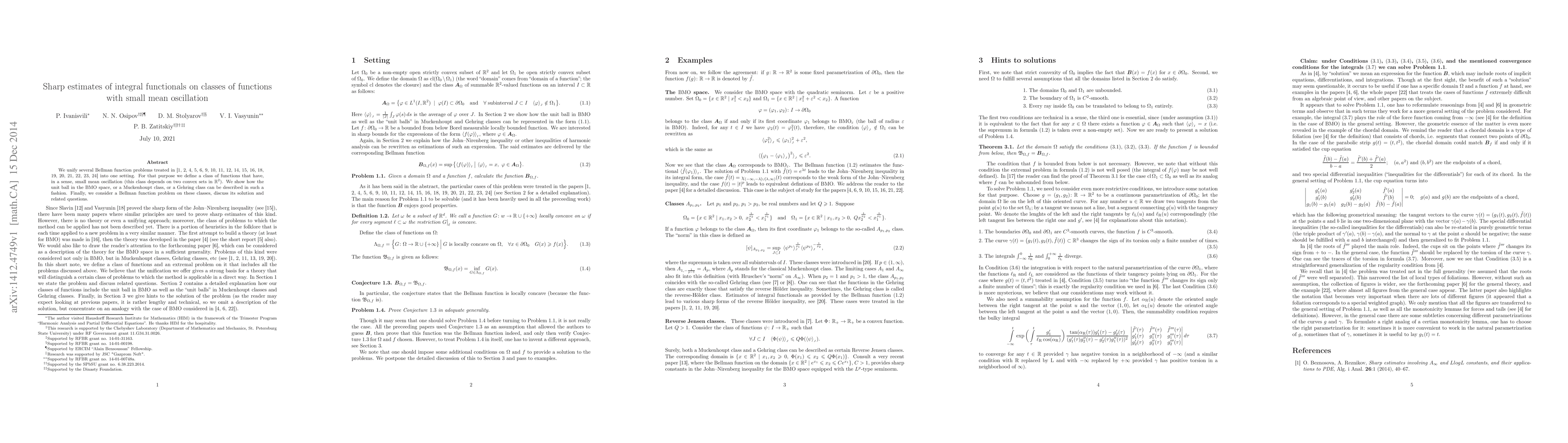 We unify several Bellman function problems into one setting. For that purpose we define a class of functions that have, in a sense, small mean oscillation (this class depends on two convex sets in $\mathbb{R}^2$). We show how the unit ball in the $\mathrm{BMO}$ space, or a Muckenhoupt class, or a Gehring class can be described in such a fashion. Finally, we consider a Bellman function problem on these classes, discuss its solution and related questions.