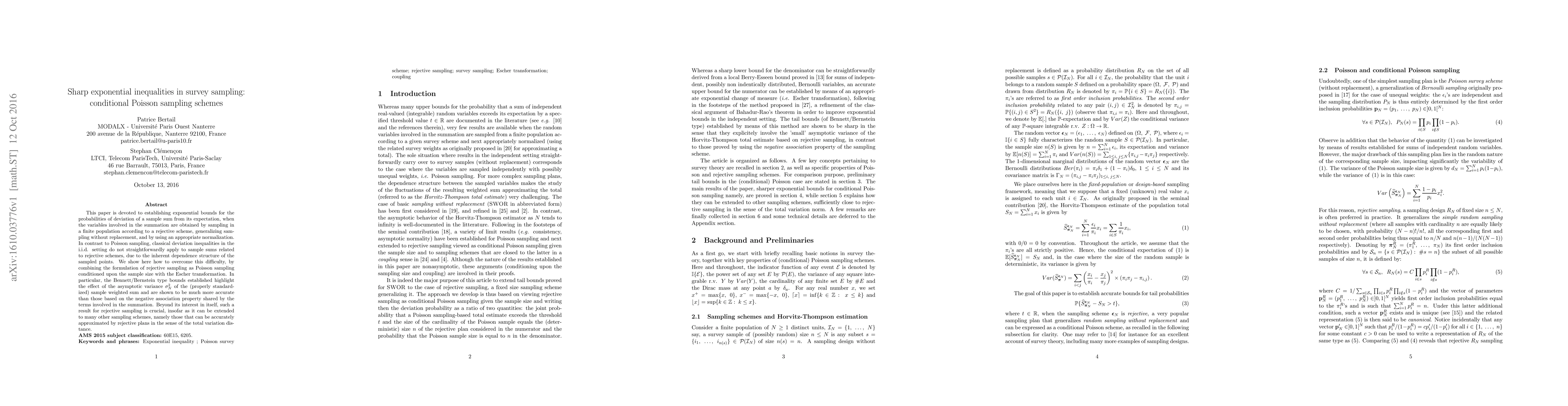 This paper is devoted to establishing exponential bounds for the probabilities of deviation of a sample sum from its expectation, when the variables involved in the summation are obtained by sampling in a finite population according to a rejective scheme, generalizing sampling without replacement, and by using an appropriate normalization. In contrast to Poisson sampling, classical deviation inequalities in the i.i.d. setting do not straightforwardly apply to sample sums related to rejective schemes, due to the inherent dependence structure of the sampled points. We show here how to overcome this difficulty, by combining the formulation of rejective sampling as Poisson sampling conditioned upon the sample size with the Escher transformation. In particular, the Bennett/Bernstein type bounds established highlight the effect of the asymptotic variance of the (properly standardized) sample weighted sum and are shown to be much more accurate than those based on the negative association property shared by the terms involved in the summation. Beyond its interest in itself, such a result for rejective sampling is crucial, insofar as it can be extended to many other sampling schemes, namely those that can be accurately approximated by rejective plans in the sense of the total variation distance.