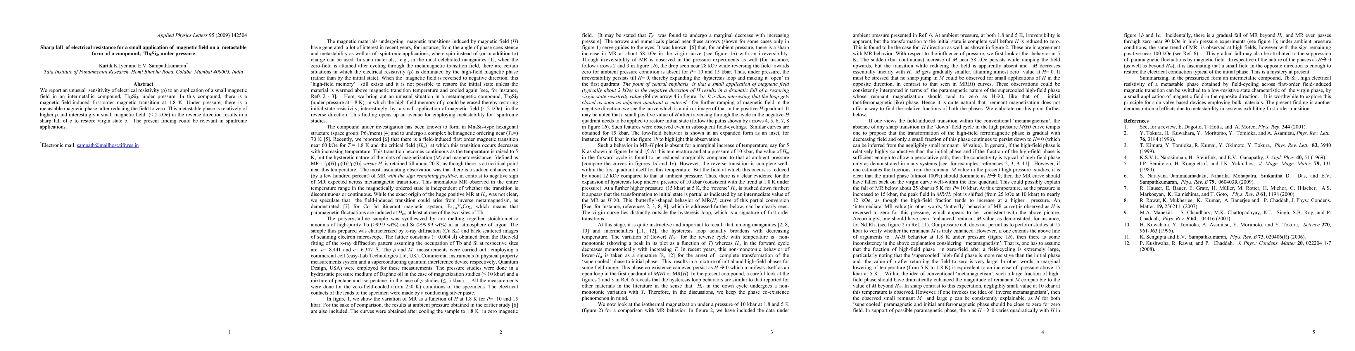 Researchers discovered a compound, Tb5Si3, that exhibits a sharp drop in electrical resistance when a small magnetic field is applied in the opposite direction, restoring its original state.