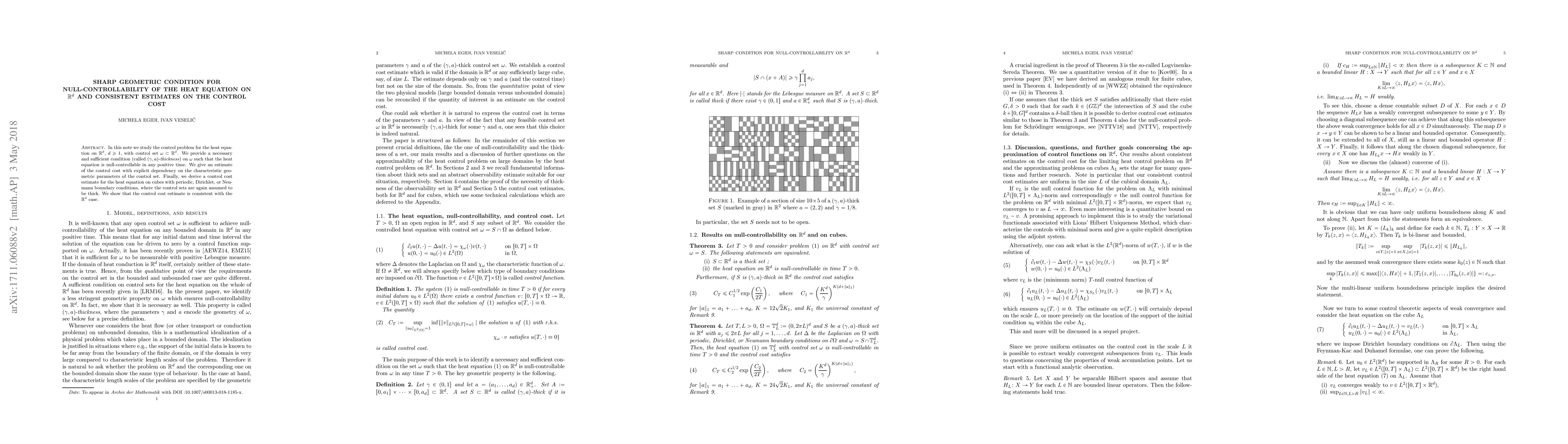 This paper establishes a sharp geometric condition for null-controllability of the heat equation on $\mathbb{R}^d$ and provides consistent estimates on the control cost, introducing a $(\gamma, a)$-thickness criterion for control sets. It also offers explicit control cost estimates for heat equations on cubes under various boundary conditions.
