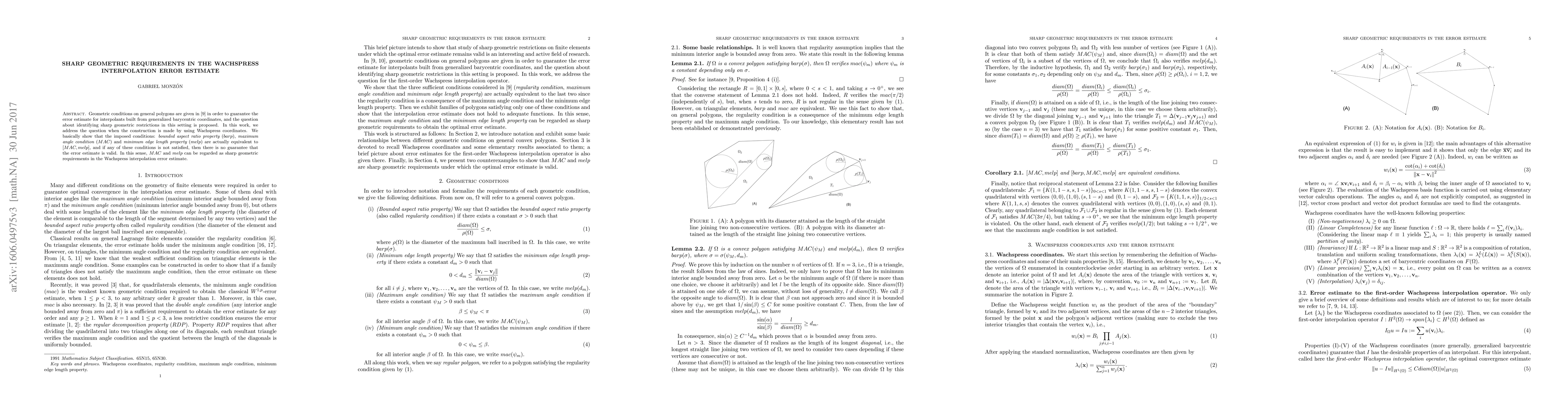 This paper identifies sharp geometric conditions for Wachspress interpolation error estimates, showing that the bounded aspect ratio property, maximum angle condition, and minimum edge length property are equivalent and necessary for valid error estimates. Without these conditions, the error estimate cannot be guaranteed.