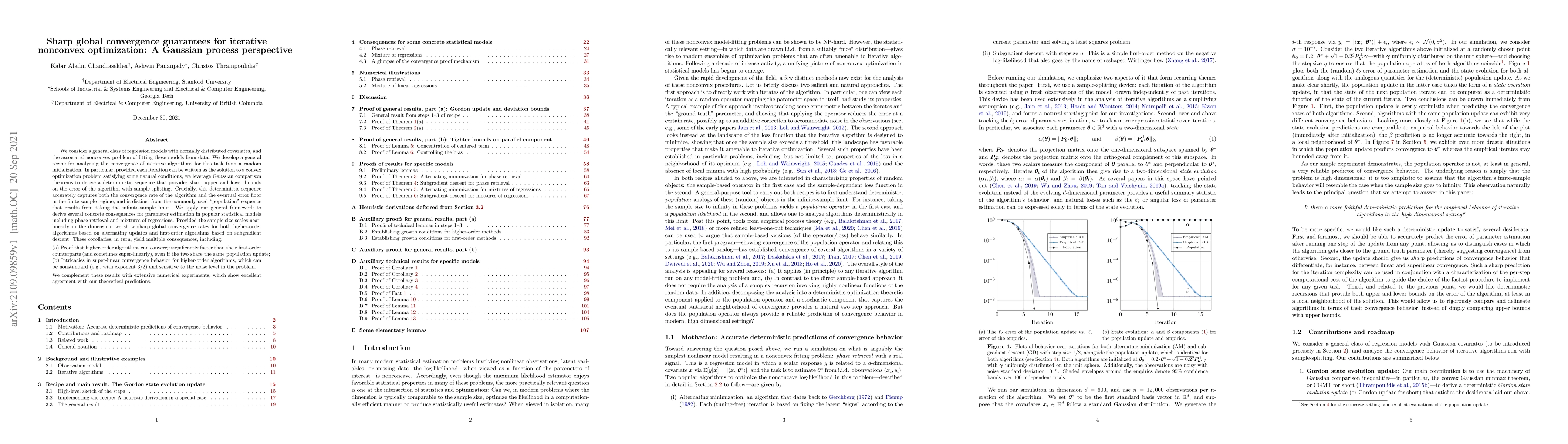 This paper establishes a general framework for analyzing the convergence of iterative nonconvex optimization algorithms using Gaussian process methods, leading to sharp global convergence guarantees for certain statistical models.