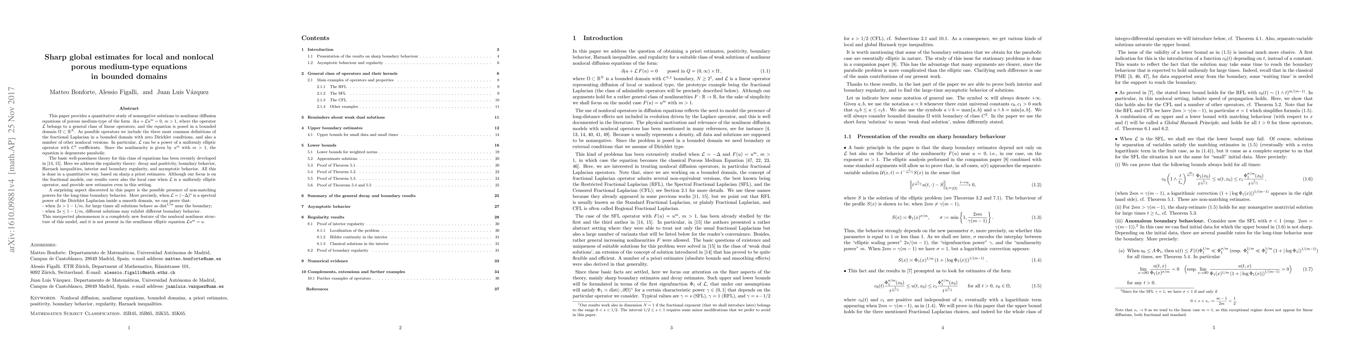 This paper provides a quantitative study of nonnegative solutions to nonlinear diffusion equations of porous medium-type of the form $\partial_t u + {\mathcal L}u^m=0$, $m>1$, where the operator ${\mathcal L}$ belongs to a general class of linear operators, and the equation is posed in a bounded domain $\Omega\subset{\mathbb R}^N$. As possible operators we include the three most common definitions of the fractional Laplacian in a bounded domain with zero Dirichlet conditions, and also a number of other nonlocal versions. In particular, ${\mathcal L}$ can be a power of a uniformly elliptic operator with $C^1$ coefficients. Since the nonlinearity is given by $u^m$ with $m>1$, the equation is degenerate parabolic. The basic well-posedness theory for this class of equations has been recently developed in [14,15]. Here we address the regularity theory: decay and positivity, boundary behavior, Harnack inequalities, interior and boundary regularity, and asymptotic behavior. All this is done in a quantitative way, based on sharp a priori estimates. Although our focus is on the fractional models, our results cover also the local case when ${\mathcal L}$ is a uniformly elliptic operator, and provide new estimates even in this setting. A surprising aspect discovered in this paper is the possible presence of non-matching powers for the long-time boundary behavior. More precisely, when ${\mathcal L}=(-\Delta)^s$ is a spectral power of the {Dirichlet} Laplacian inside a smooth domain, we can prove that: - when $2s> 1-1/m$, for large times all solutions behave as ${\rm dist}^{1/m}$ near the boundary; - when $2s\le 1-1/m$, different solutions may exhibit different boundary behavior. This unexpected phenomenon is a completely new feature of the nonlocal nonlinear structure of this model, and it is not present in the semilinear elliptic equation ${\mathcal L}u^m=u$.