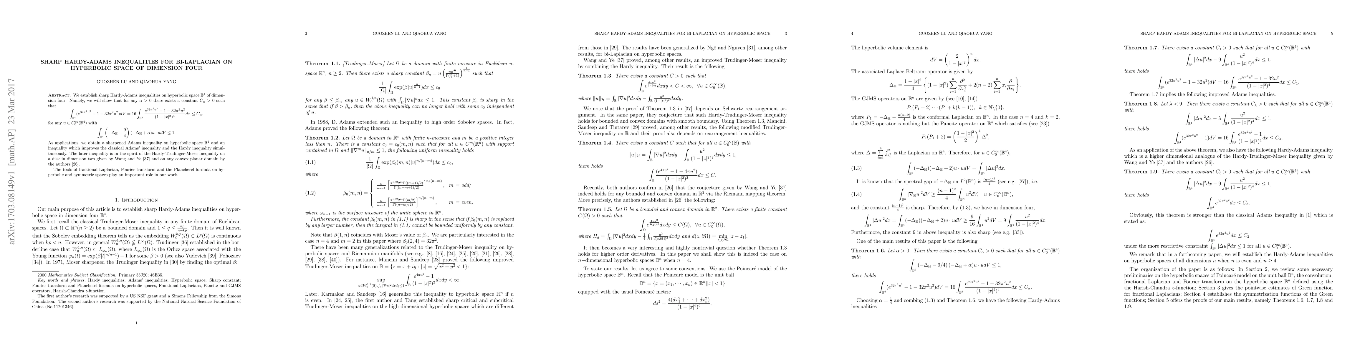 We establish sharp Hardy-Adams inequalities on hyperbolic space $\mathbb{B}^{4}$ of dimension four. Namely, we will show that for any $\alpha>0$ there exists a constant $C_{\alpha}>0$ such that \[ \int_{\mathbb{B}^{4}}(e^{32\pi^{2} u^{2}}-1-32\pi^{2} u^{2})dV=16\int_{\mathbb{B}^{4}}\frac{e^{32\pi^{2} u^{2}}-1-32\pi^{2} u^{2}}{(1-|x|^{2})^{4}}dx\leq C_{\alpha}. \] for any $u\in C^{\infty}_{0}(\mathbb{B}^{4})$ with \[ \int_{\mathbb{B}^{4}}\left(-\Delta_{\mathbb{H}}-\frac{9}{4}\right)(-\Delta_{\mathbb{H}}+\alpha)u\cdot udV\leq1. \] As applications, we obtain a sharpened Adams inequality on hyperbolic space $\mathbb{B}^{4}$ and an inequality which improves the classical Adams' inequality and the Hardy inequality simultaneously. The later inequality is in the spirit of the Hardy-Trudinger-Moser inequality on a disk in dimension two given by Wang and Ye [37] and on any convex planar domain by the authors [26]. The tools of fractional Laplacian, Fourier transform and the Plancherel formula on hyperbolic spaces and symmetric spaces play an important role in our work.