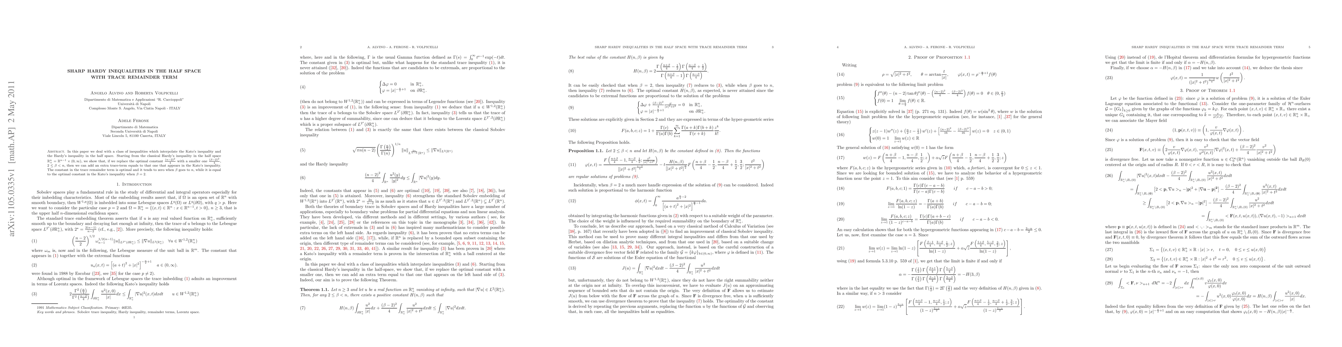 Kato's inequality and the Hardy's inequality in the half space. Starting from