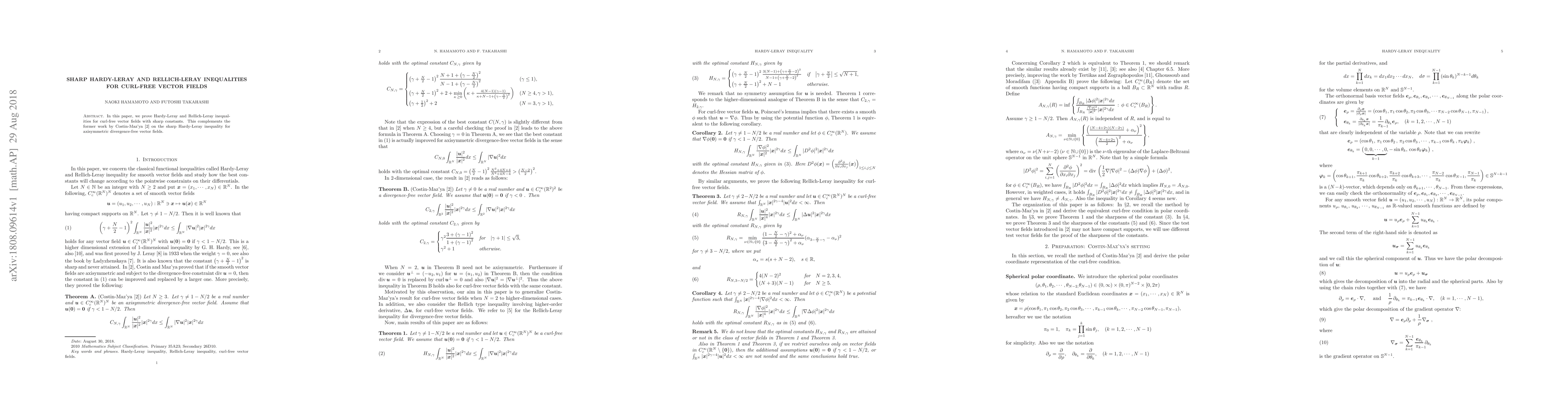 Summary: This paper establishes sharp Hardy-Leray and Rellich-Leray inequalities for curl-free vector fields, extending previous results for axisymmetric divergence-free vector fields and providing new insights into vector field analysis.