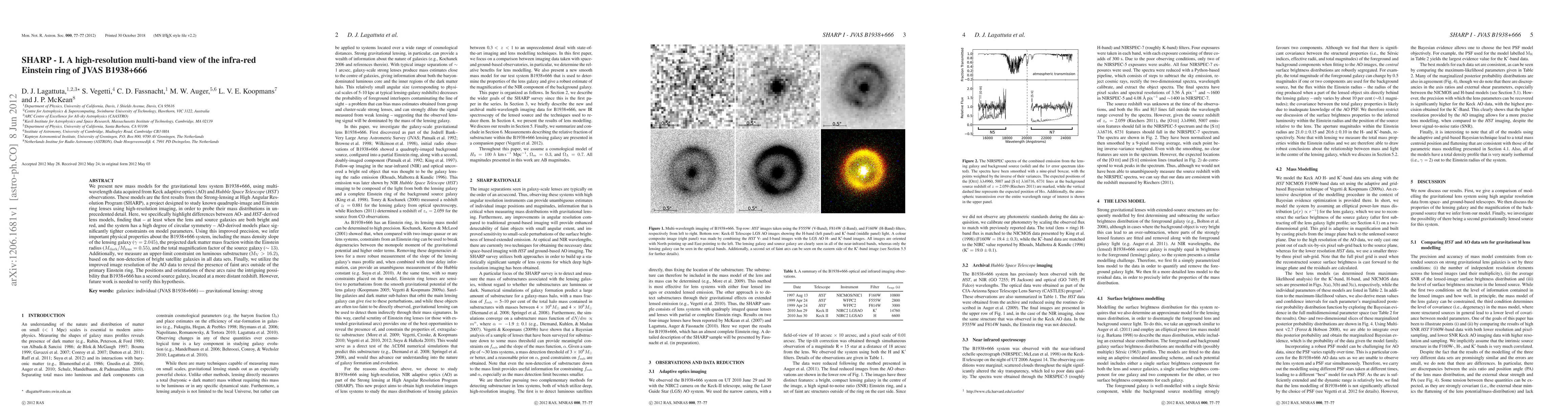 The SHARP program presents new mass models for the gravitational lens system B1938+666 using high-resolution multi-wavelength data from Keck adaptive optics and HST. AO-derived models provide tighter constraints, revealing physical properties like a mass density slope of gamma = 2.045, and suggesting faint arcs may indicate a second, more distant source galaxy.