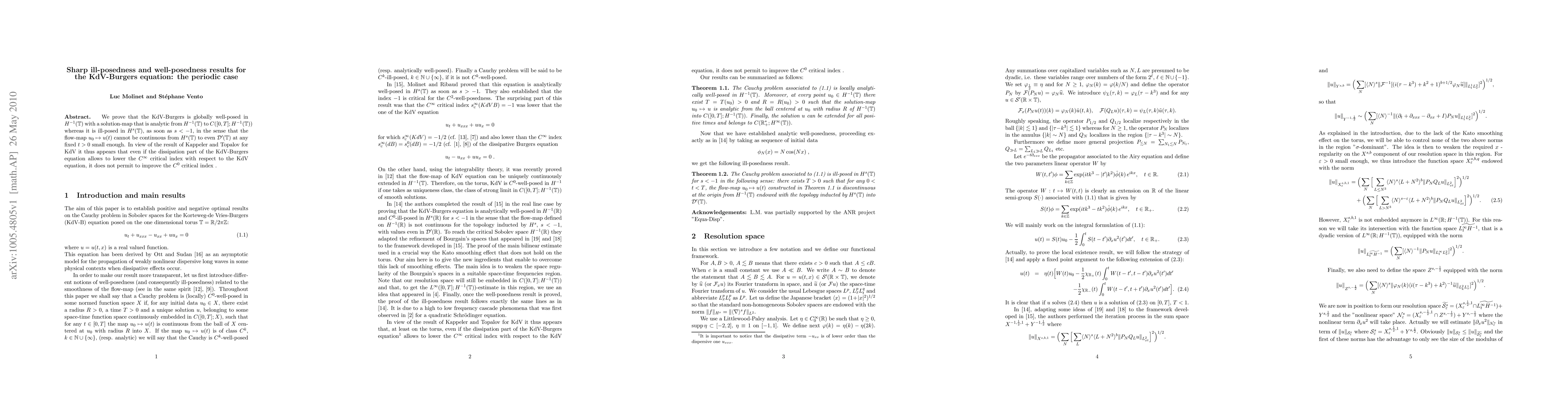 We prove that the KdV-Burgers is globally well-posed in $ H^{-1}(\T) $ with a solution-map that is analytic from $H^{-1}(\T) $ to $C([0,T];H^{-1}(\T))$ whereas it is ill-posed in $ H^s(\T) $, as soon as $ s<-1 $, in the sense that the flow-map $u_0\mapsto u(t) $ cannot be continuous from $ H^s(\T) $ to even ${\cal D}'(\T) $ at any fixed $ t>0 $ small enough. In view of the result of Kappeler and Topalov for KdV it thus appears that even if the dissipation part of the KdV-Burgers equation allows to lower the $ C^\infty $ critical index with respect to the KdV equation, it does not permit to improve the $ C^0$ critical index .