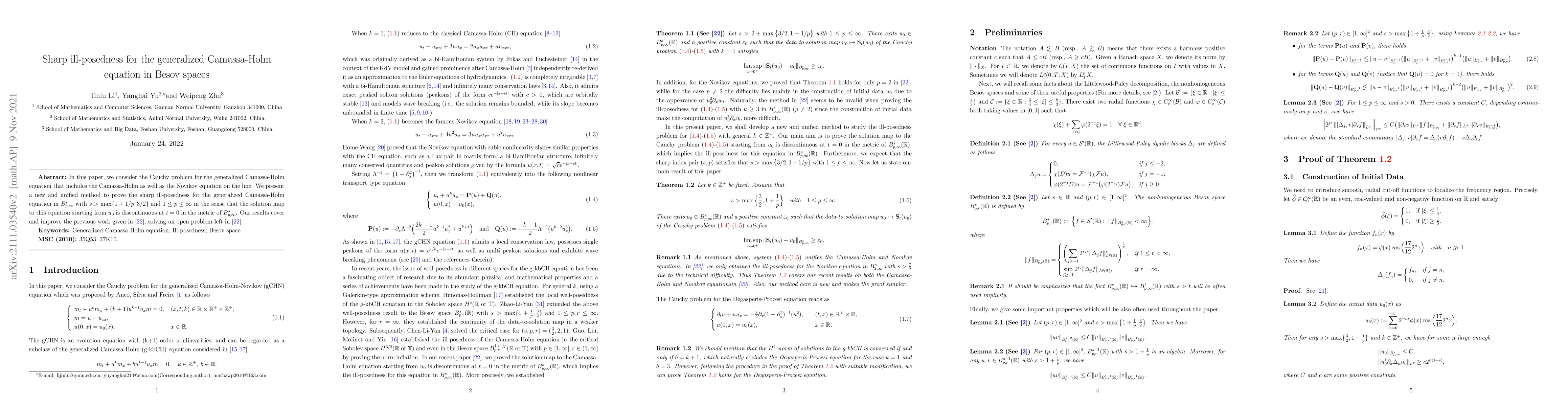 This paper demonstrates the sharp ill-posedness of the generalized Camassa-Holm equation in Besov spaces, showing that the solution map is discontinuous at $t = 0$ for $s > \max\{1+1/p, 3/2\}$, improving upon previous results and solving an open problem.