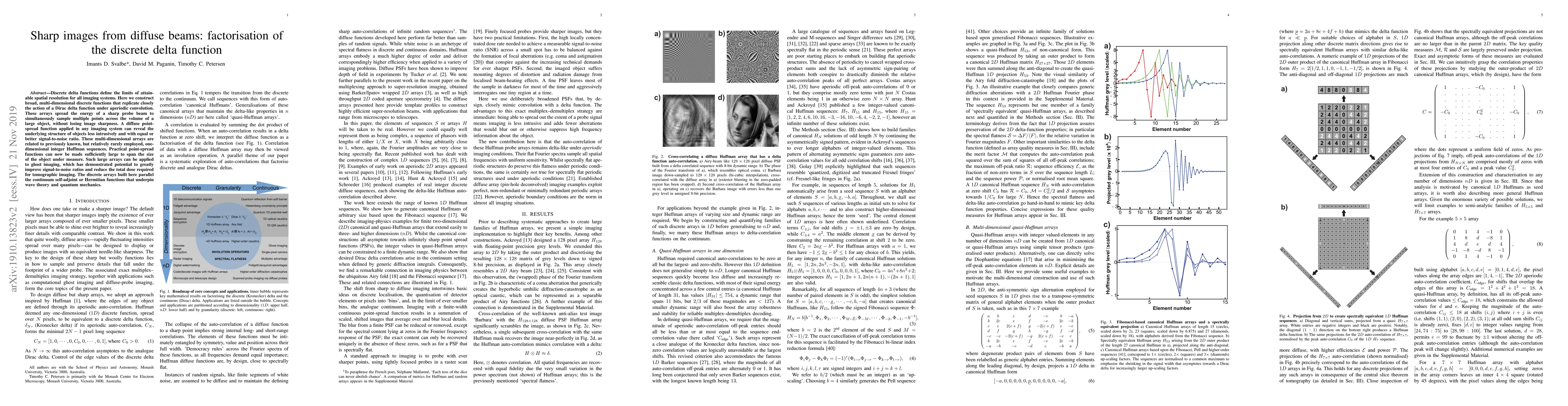 Discrete delta functions define the limits of attainable spatial resolution for all imaging systems. Here we construct broad, multi-dimensional discrete functions that replicate closely the action of a Dirac delta function under aperiodic convolution. These arrays spread the energy of a sharp probe beam to simultaneously sample multiple points across the volume of a large object, without losing image sharpness. A diffuse point-spread function applied in any imaging system can reveal the underlying structure of objects less intrusively and with equal or better signal-to-noise ratio. These multi-dimensional arrays are related to previously known, but relatively rarely employed, one-dimensional integer Huffman sequences. Practical point-spread functions can now be made sufficiently large to span the size of the object under measure. Such large arrays can be applied to ghost imaging, which has demonstrated potential to greatly improve signal-to-noise ratios and reduce the total dose required for tomographic imaging. The discrete arrays built here parallel the continuum self-adjoint or Hermitian functions that underpin wave theory and quantum mechanics.
