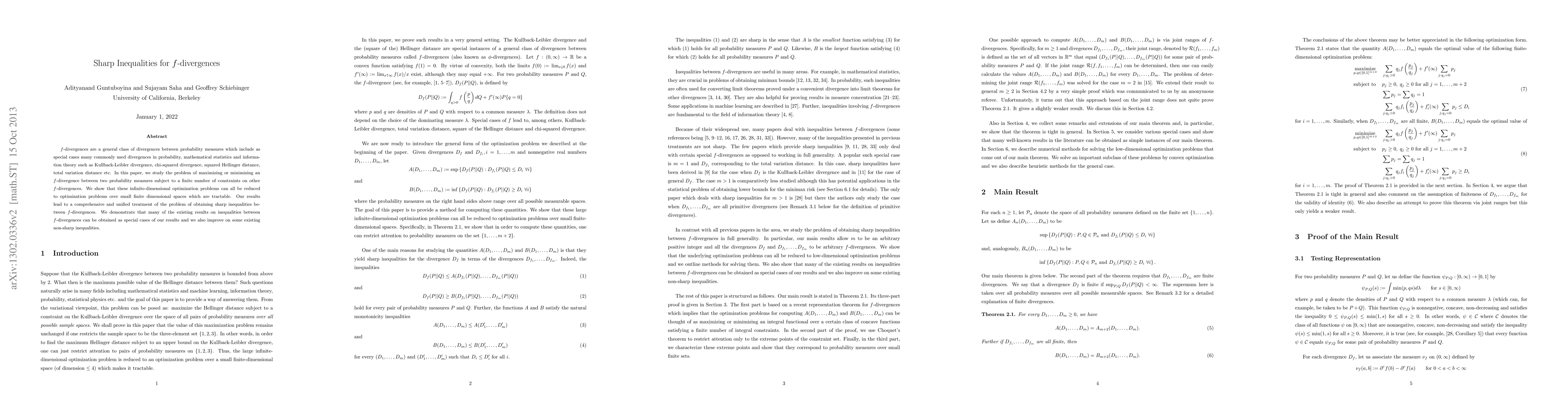 This paper explores the optimization of $f$-divergences under constraints, demonstrating that complex infinite-dimensional problems can be simplified into manageable finite-dimensional ones. The authors provide a unified framework for deriving sharp inequalities between various $f$-divergences, improving upon existing non-sharp results.