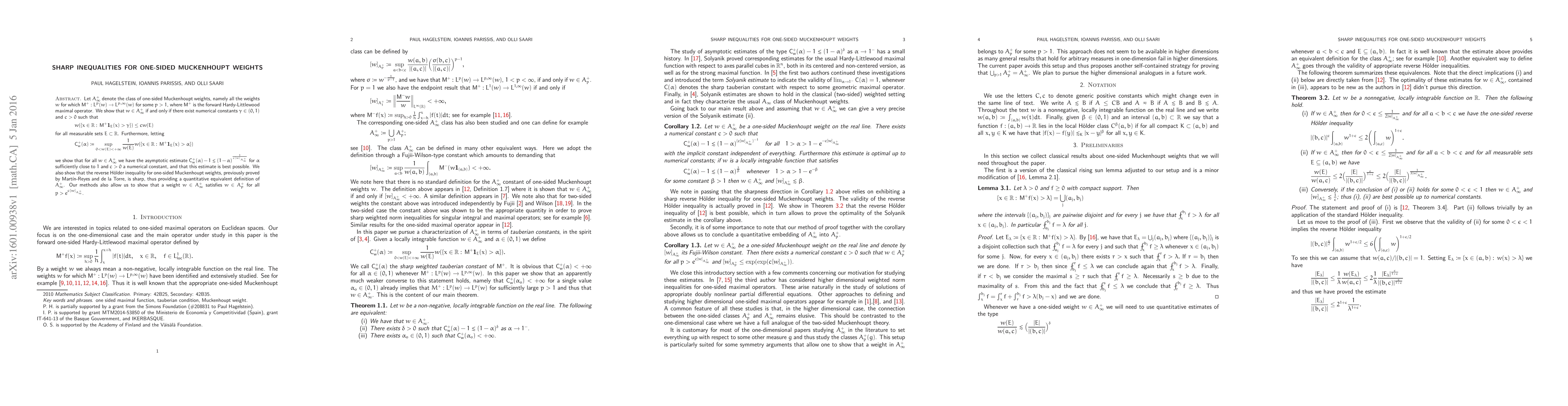 Let $A_\infty ^+$ denote the class of one-sided Muckenhoupt weights, namely