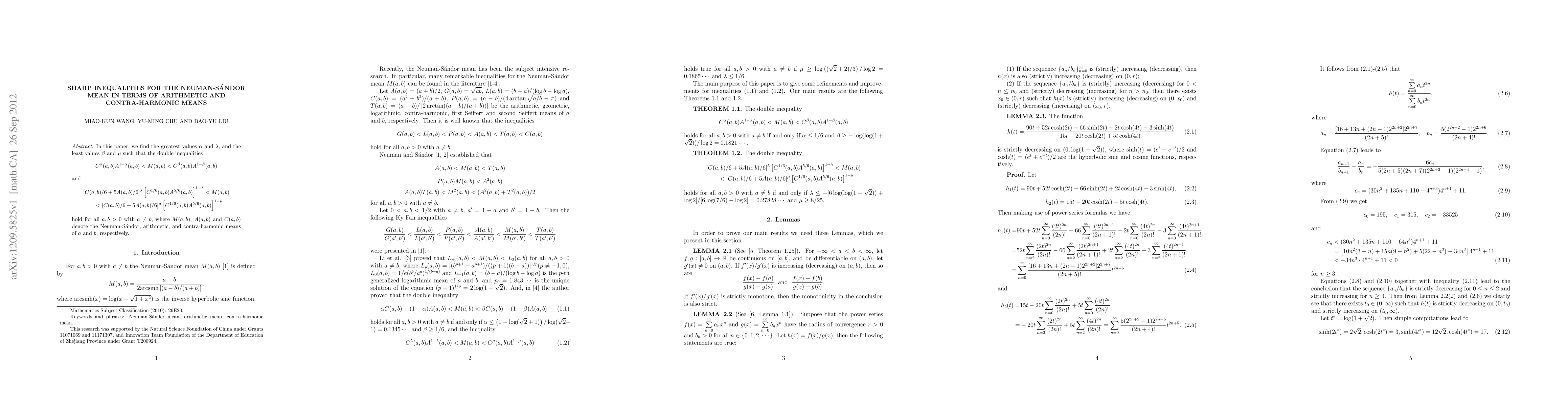 This paper determines the optimal values for $\alpha$, $\beta$, $\lambda$, and $\mu$ to establish sharp inequalities between the Neuman-Sandor mean and combinations of arithmetic and contra-harmonic means for positive $a$ and $b$ where $a \neq b$.