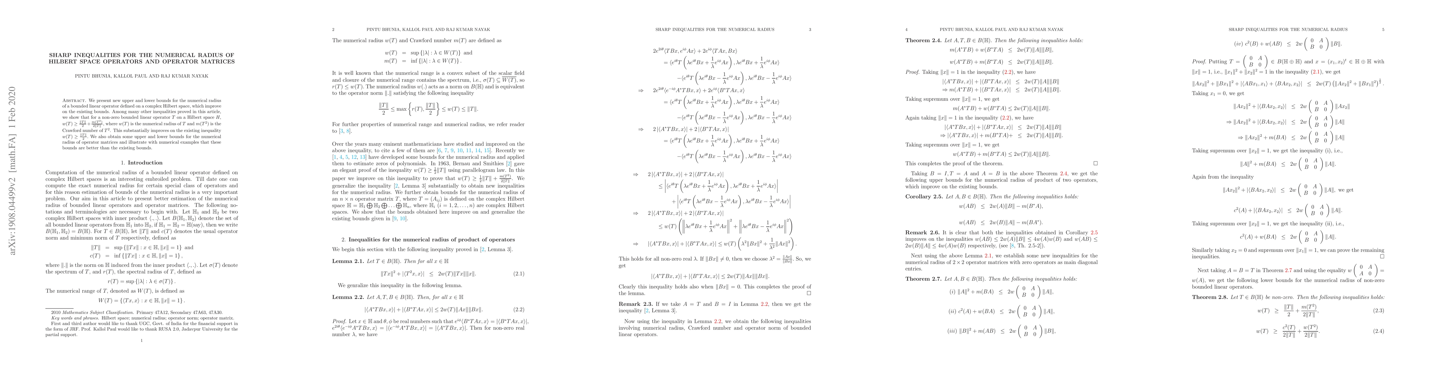 This paper presents improved upper and lower bounds for the numerical radius of bounded linear operators on complex Hilbert spaces, notably showing $w(T)\geq \frac{\|T\|}{2}+\frac{m(T^2)}{2\|T\|}$, which surpasses the existing inequality $w(T)\geq \frac{\|T\|}{2}$. It also extends these bounds to operator matrices with numerical examples demonstrating their superiority over previous bounds.