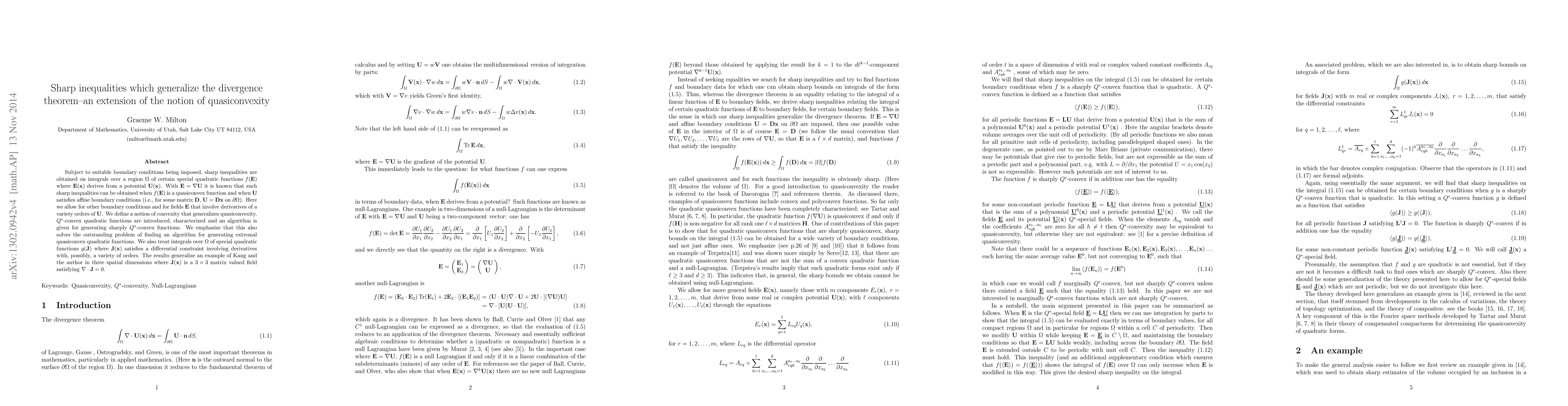 Subject to suitable boundary conditions being imposed, sharp inequalities are obtained on integrals over a region $\Omega$ of certain special quadratic functions $f(\bf{E})$ where $\bf{E}(\bf{x})$ derives from a potential $\bf{U}(\bf{x})$. With $\bf{E}=\nabla\bf{U}$ it is known that such sharp inequalities can be obtained when $f(\bf{E})$ is a quasiconvex function and when $\bf{U}$ satisfies affine boundary conditions (i.e., for some matrix $\bf{D}$, $\bf{U}=\bf{D}\bf{x}$ on $\partial\Omega$). Here we allow for other boundary conditions and for fields $\bf{E}$ that involve derivatives of a variety orders of $\bf{U}$. We define a notion of convexity that generalizes quasiconvexity. $Q^*$-convex quadratic functions are introduced, characterized and an algorithm is given for generating sharply $Q^*$-convex functions. We emphasize that this also solves the outstanding problem of finding an algorithm for generating extremal quasiconvex quadratic functions. We also treat integrals over $\Omega$ of special quadratic functions $g(\bf{J})$ where $\bf{J}(\bf{x})$ satisfies a differential constraint involving derivatives with, possibly, a variety of orders. The results generalize an example of Kang and the author in three spatial dimensions where $\bf{J}(\bf{x})$ is a $3\times 3$ matrix valued field satisfying $\nabla\cdot\bf{J}=0$. In the addendum the paper is clarified. Notably, much more general boundary conditions are given under which sharp lower bounds on the integrals of certain quadratic functions of the fields can be obtained. As a consequence, strict $Q^*$-convexity is found to be an appropriate condition to ensure uniqueness of the solutions of a wide class of partial differential equations with constant coefficients, in a given domain $\Omega$ with appropriate boundary conditions.