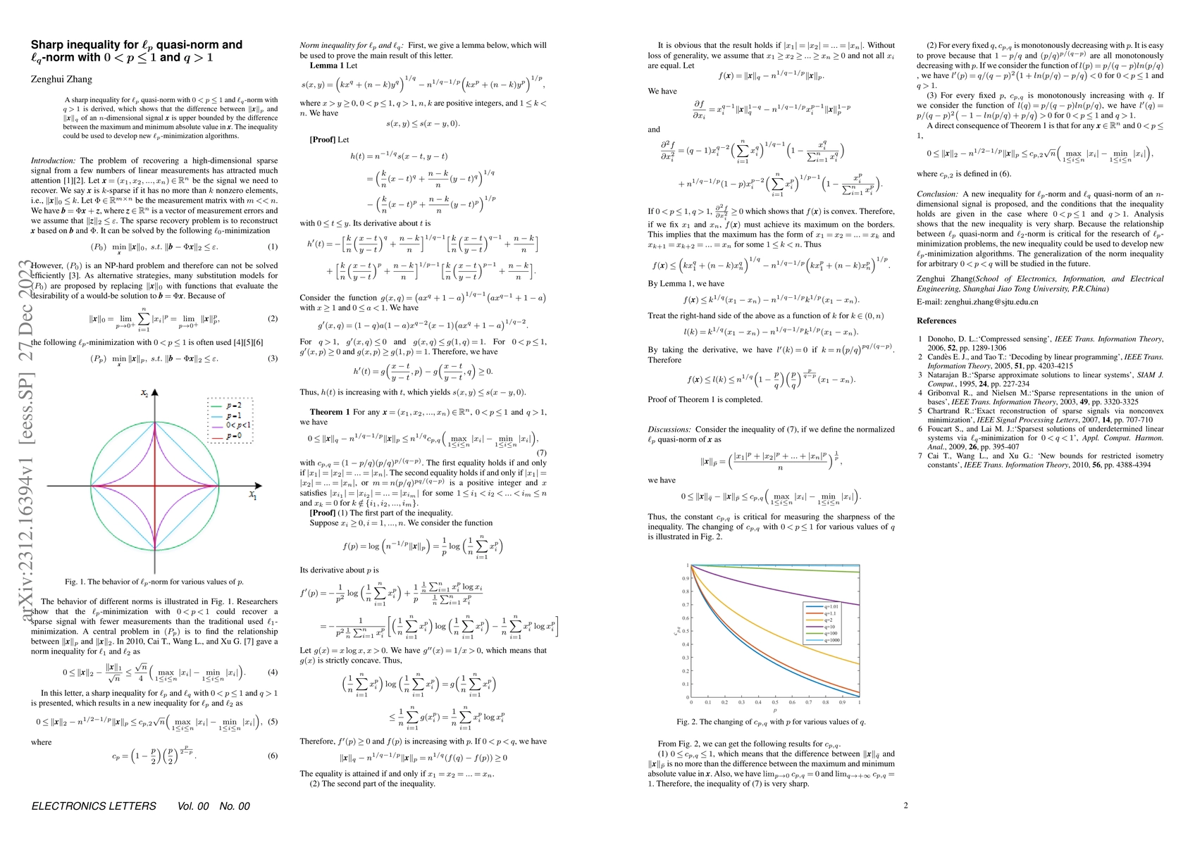 This paper derives a sharp inequality relating $\ell_p$ quasi-norms for $0<p\leq 1$ and $\ell_q$-norms for $q>1$, showing that the difference between them is bounded by the difference between the maximum and minimum absolute values in a signal. This result may inspire new $\ell_p$-minimization algorithms.