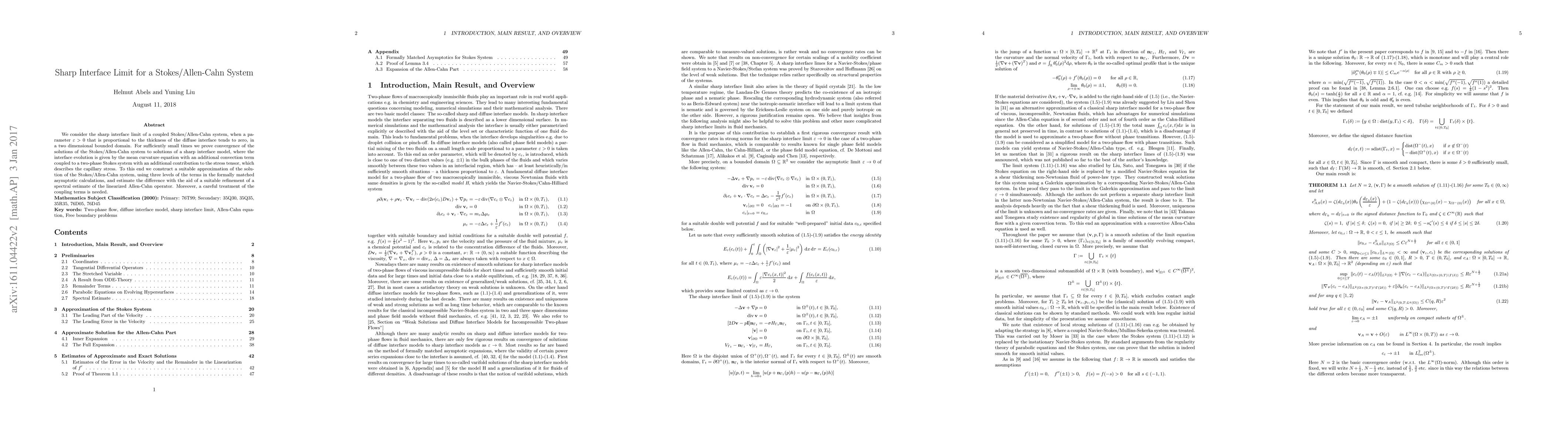 The paper presents a detailed asymptotic analysis leading to the derivation of a sharp interface model, along with rigorous estimates of the error in the velocity and the remainder in the linearization of f′.