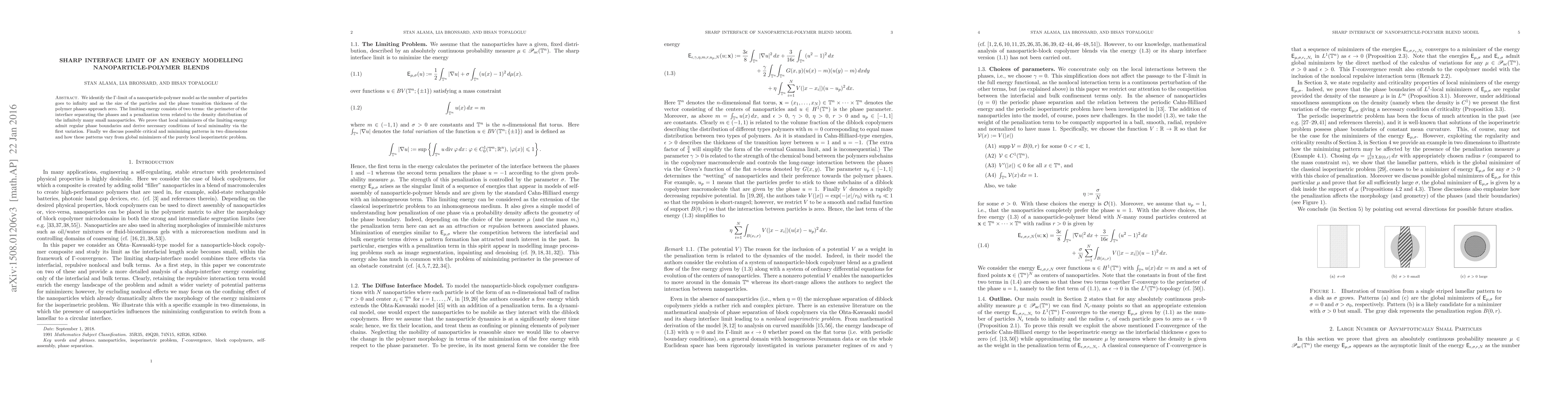 The paper presents a rigorous mathematical analysis leading to the identification of the sharp interface limit of an energy model for nanoparticle-polymer blends.