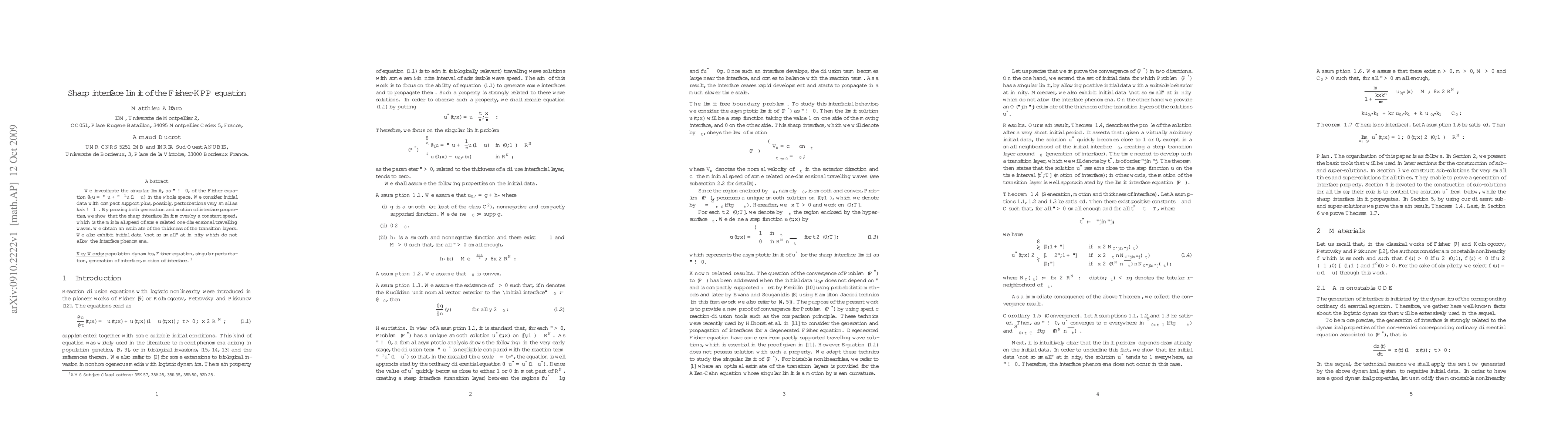 The study investigates the sharp interface limit of the Fisher-KPP equation as the perturbation parameter approaches zero, revealing that the interface moves at a constant speed and exhibits specific transition layer thickness estimates.