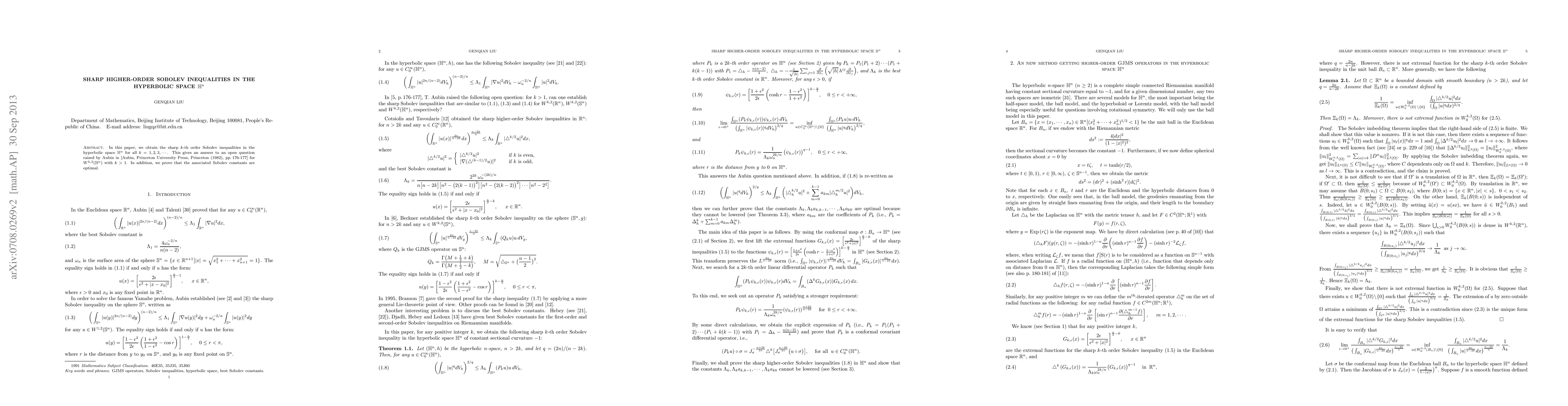 This paper proves sharp k-th order Sobolev inequalities in the hyperbolic space H^n for all k=1 to infinity, answering an open question and showing optimal Sobolev constants.