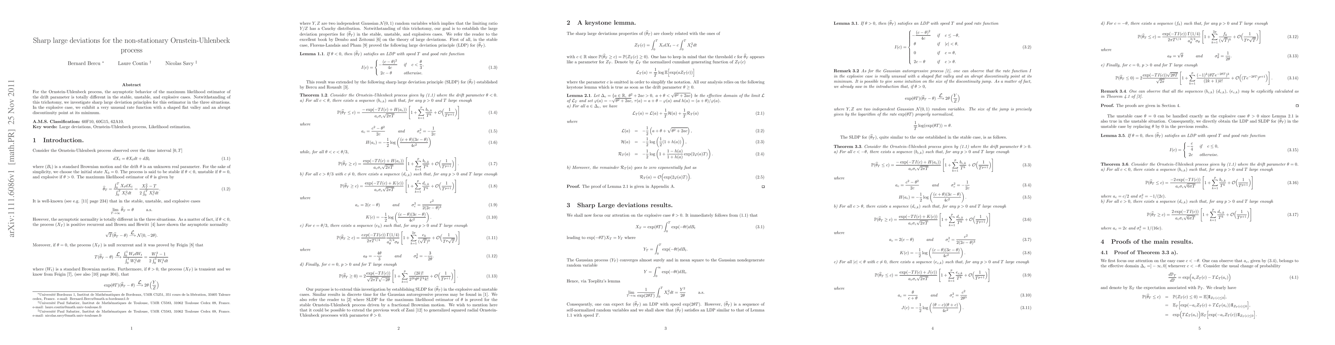 This paper explores sharp large deviation principles for the maximum likelihood estimator of the drift parameter in non-stationary Ornstein-Uhlenbeck processes, revealing distinct asymptotic behaviors in stable, unstable, and explosive cases, especially highlighting a unique rate function with an unusual flat valley in the explosive scenario.