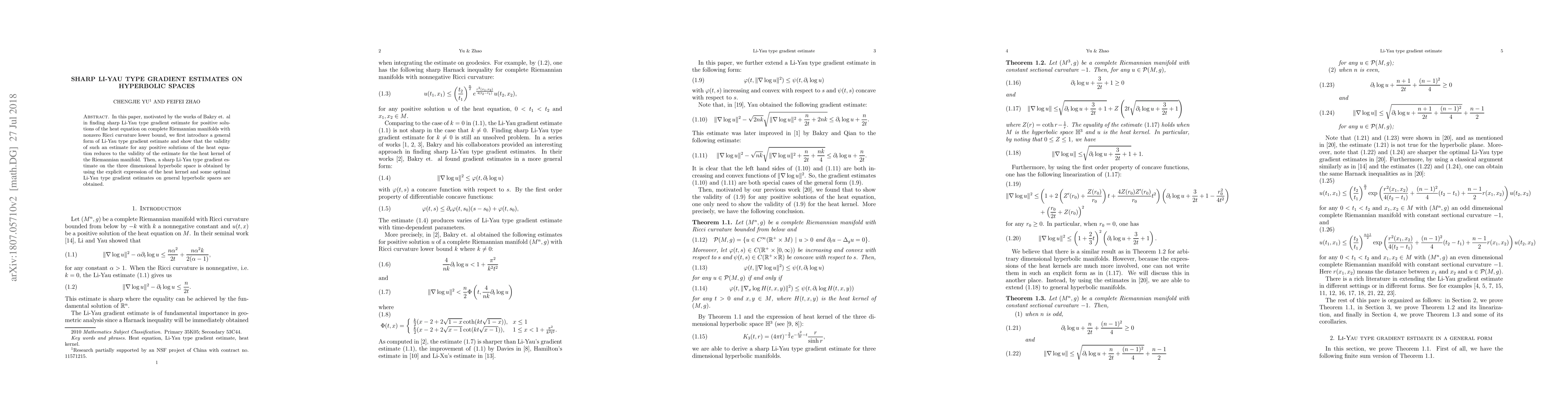 In this paper, motivated by the works of Bakry et. al in finding sharp Li-Yau type gradient estimate for positive solutions of the heat equation on complete Riemannian manifolds with nonzero Ricci curvature lower bound, we first introduce a general form of Li-Yau type gradient estimate and show that the validity of such an estimate for any positive solutions of the heat equation reduces to the validity of the estimate for the heat kernel of the Riemannian manifold. Then, a sharp Li-Yau type gradient estimate on the three dimensional hyperbolic space is obtained by using the explicit expression of the heat kernel and some optimal Li-Yau type gradient estimates on general hyperbolic spaces are obtained.