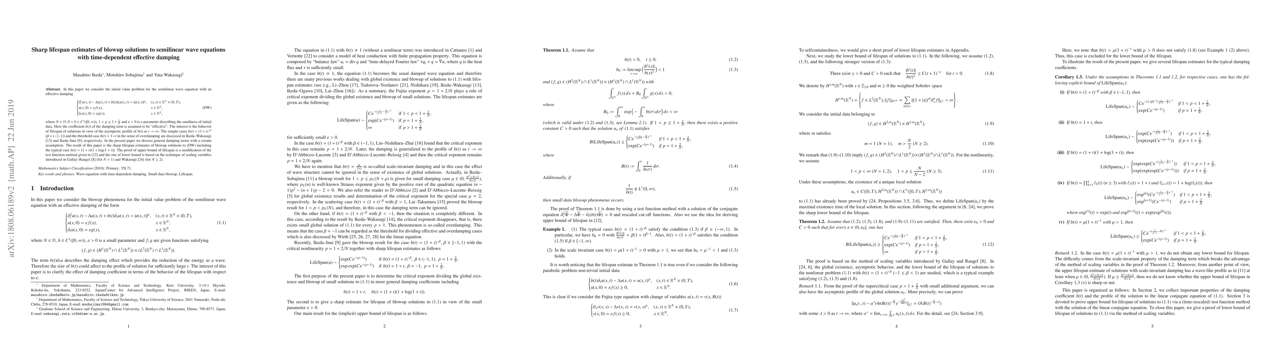 This paper investigates the lifespan of solutions to semilinear wave equations with time-dependent effective damping, providing sharp estimates for blowup scenarios. It considers the impact of the damping's asymptotic behavior on solution lifespan, including cases between effective and overdamping.