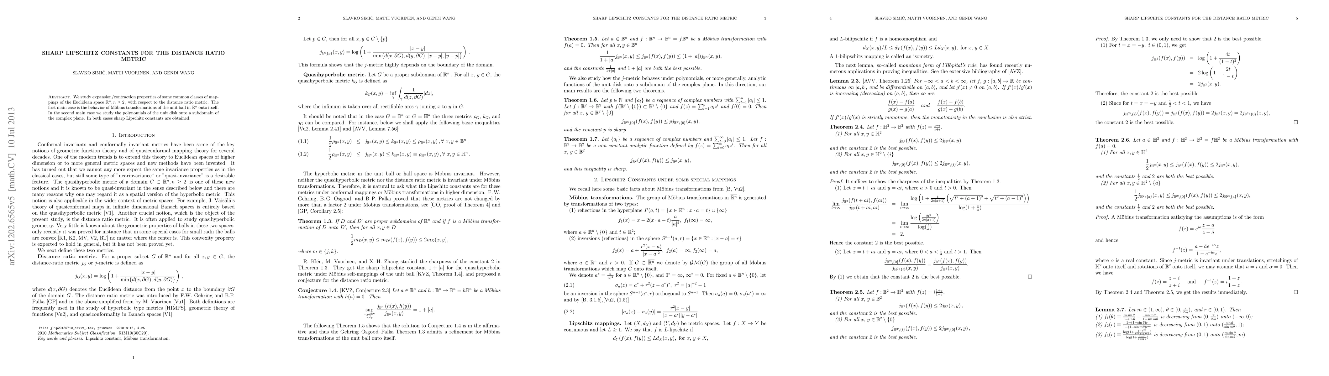This research investigates the expansion and contraction properties of mappings in Euclidean space concerning the distance ratio metric, focusing on M\"obius transformations of the unit ball and polynomials of the unit disk. Sharp Lipschitz constants are derived for both cases.