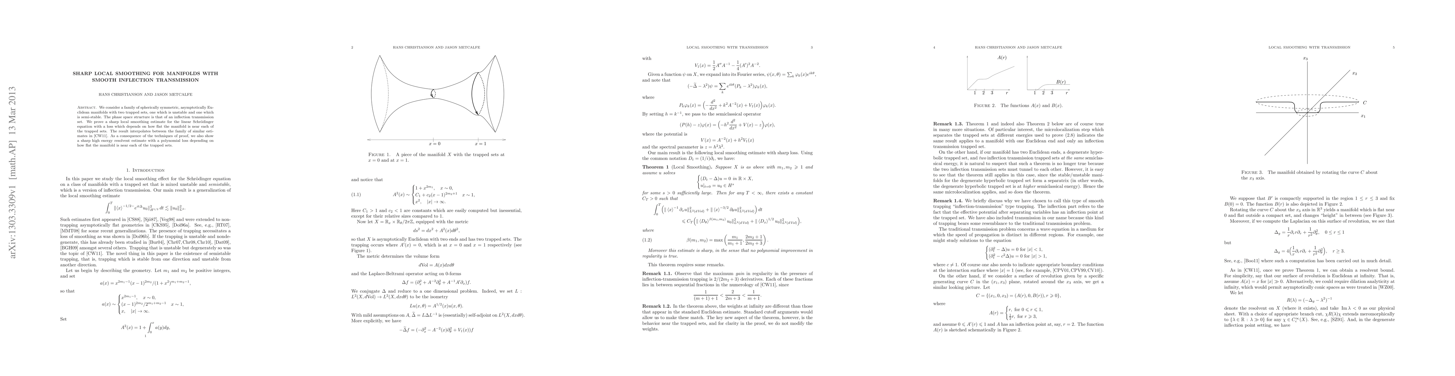 We consider a family of spherically symmetric, asymptotically Euclidean manifolds with two trapped sets, one which is unstable and one which is semi-stable. The phase space structure is that of an inflection transmission set. We prove a sharp local smoothing estimate for the linear Schr\"odinger equation with a loss which depends on how flat the manifold is near each of the trapped sets. The result interpolates between the family of similar estimates in \cite{ChWu-lsm}. As a consequence of the techniques of proof, we also show a sharp high energy resolvent estimate with a polynomial loss depending on how flat the manifold is near each of the trapped sets.