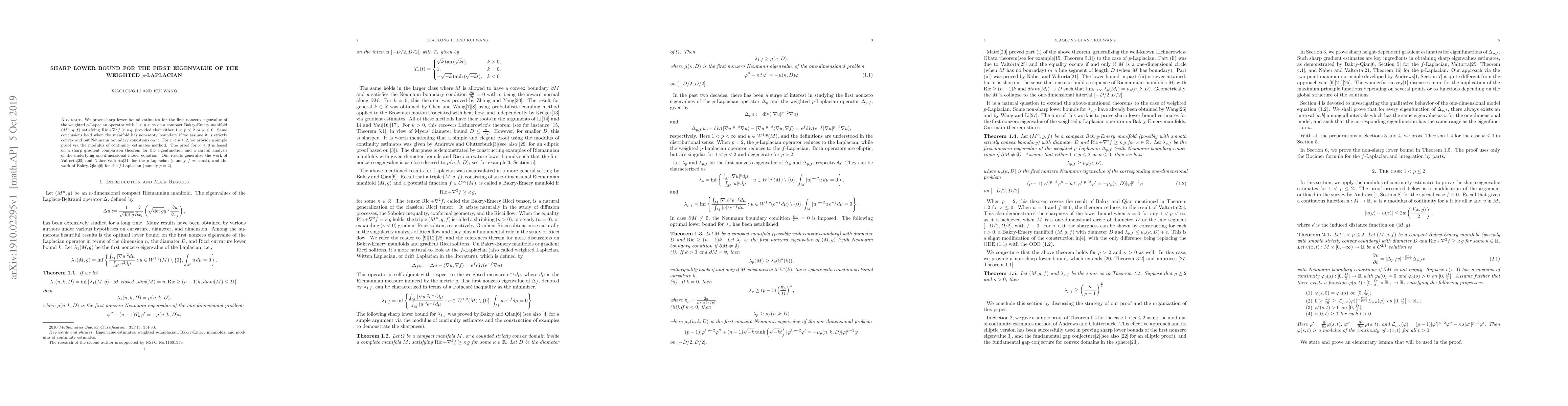 This paper establishes sharp lower bounds for the first nonzero eigenvalue of the weighted $p$-Laplacian on compact Bakry-Emery manifolds, generalizing previous results for the $p$-Laplacian and $f$-Laplacian. The proofs leverage modulus of continuity and gradient comparison theorems, depending on the values of $p$ and $\kappa$.