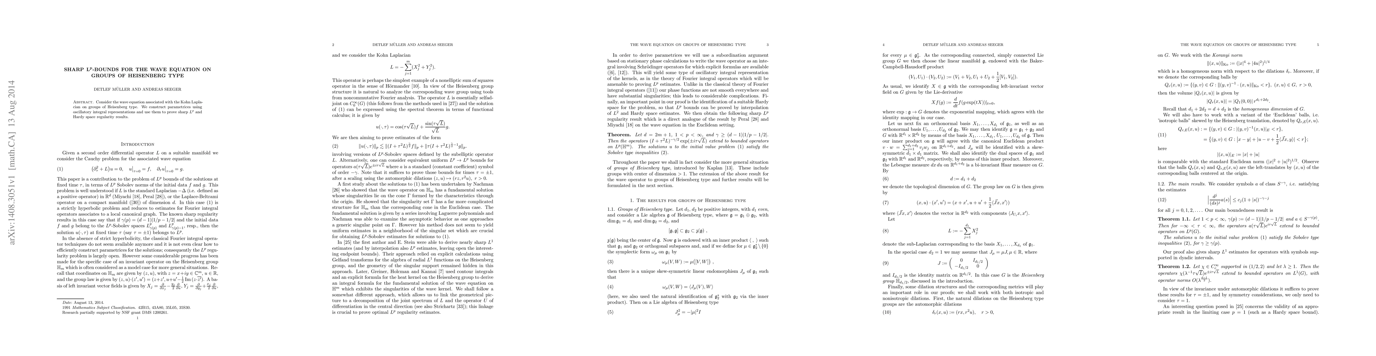 Consider the wave equation associated with the Kohn Laplacian on groups of Heisenberg type. We construct parametrices using oscillatory integral representations and use them to prove sharp $L^p$ and Hardy space regularity results.