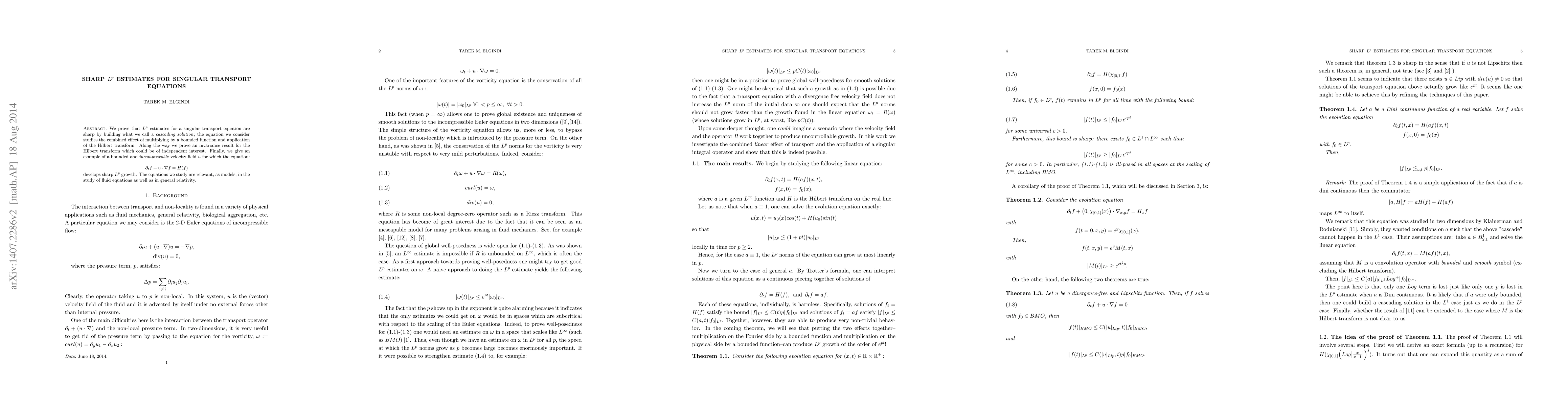 Researchers prove sharp L^p estimates for a singular transport equation, which could have implications in fluid dynamics and general relativity, by introducing a new solution approach called the 'cascading solution'. This method also leads to an independent interest finding about the Hilbert transform.