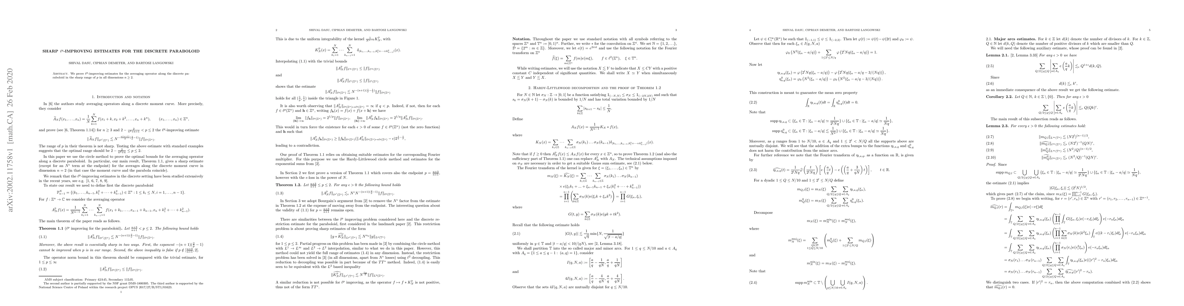We prove $l^p$-improving estimates for the averaging operator along the discrete paraboloid in the sharp range of $p$ in all dimensions $n\ge 2$.