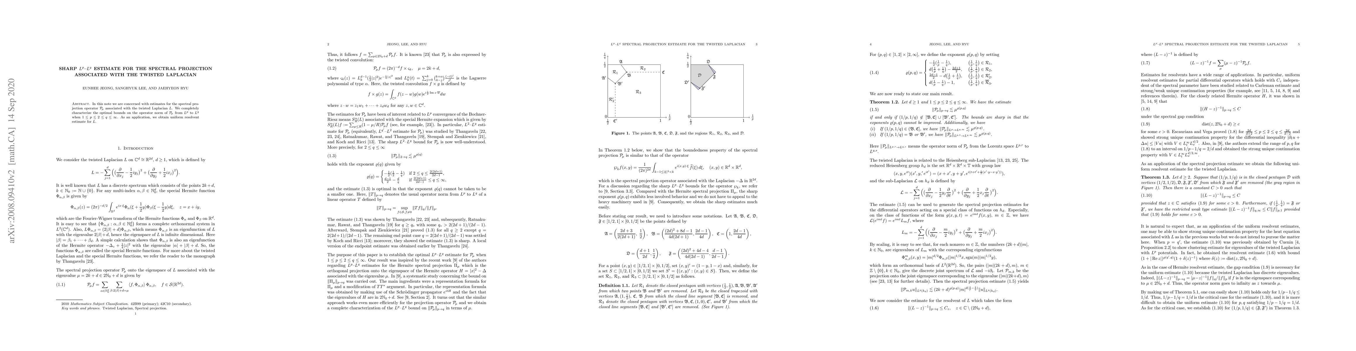 In this note we are concerned with estimates for the spectral projection operator $\mathcal{P}_\mu$ associated with the twisted Laplacian $L$. We completely characterize the optimal bounds on the operator norm of $\mathcal{P}_\mu$ from $L^p$ to $L^q$ when $1\le p\le 2\le q\le \infty$. As an application, we obtain uniform resolvent estimate for $L$.