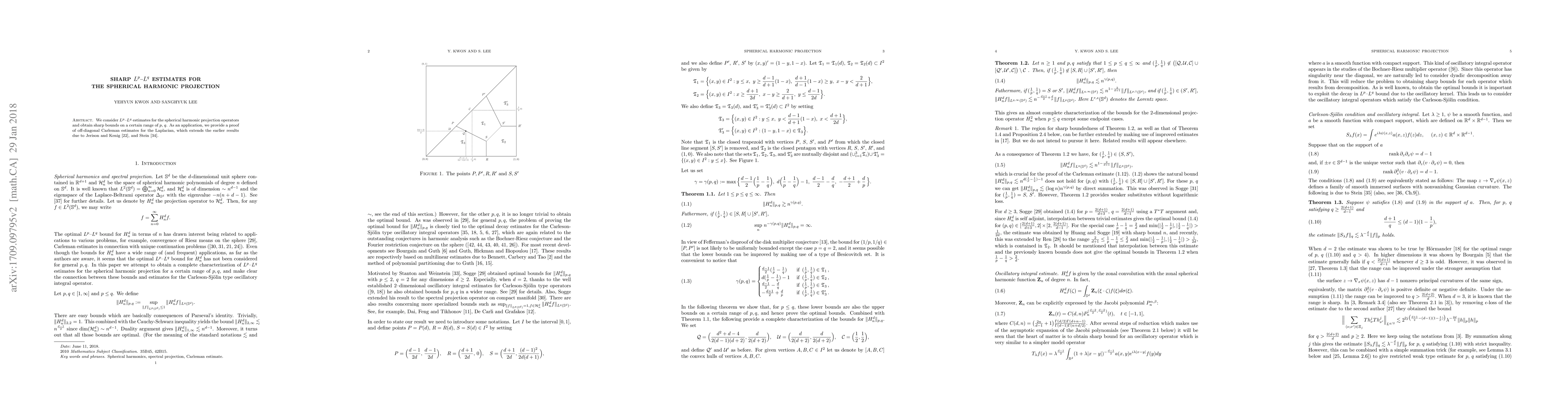 This paper establishes sharp $L^p$-$L^q$ estimates for spherical harmonic projection operators, extending previous results by Jerison and Kenig, and Stein, and applies these estimates to prove off-diagonal Carleman estimates for the Laplacian.