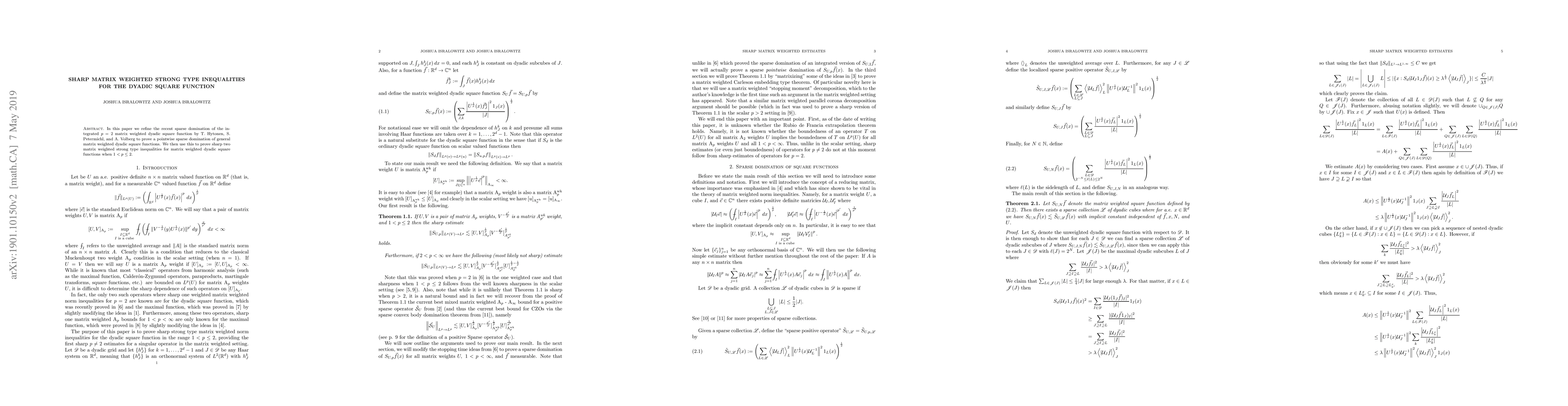 This paper refines sparse domination results for matrix weighted dyadic square functions, establishing pointwise sparse domination and proving sharp two matrix weighted strong type inequalities for $1 < p \leq 2$.