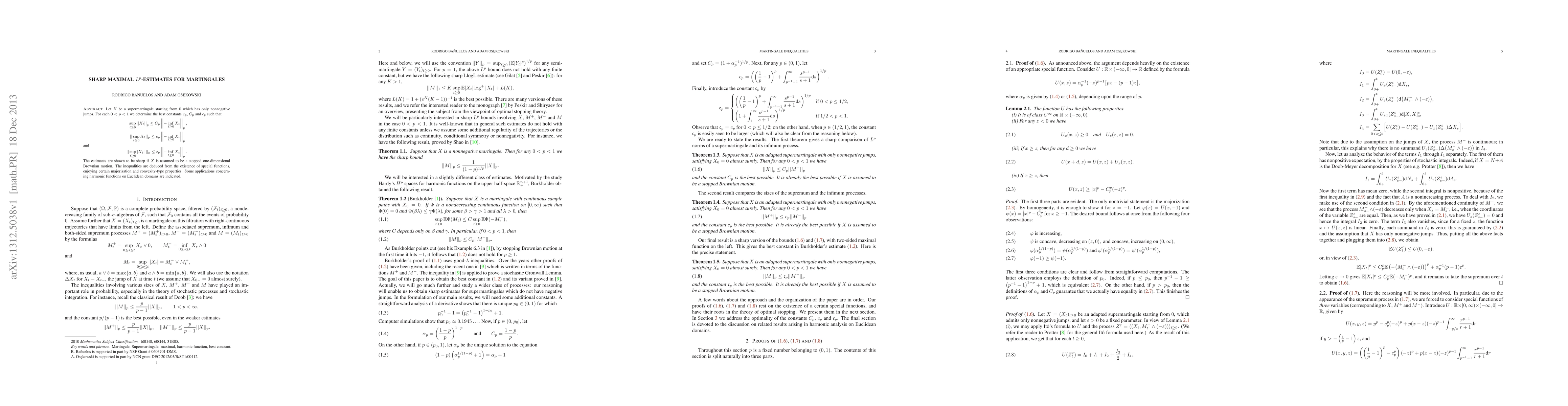 Let $X$ be a supermartingale starting from $0$ which has only nonnegative jumps. For each $0