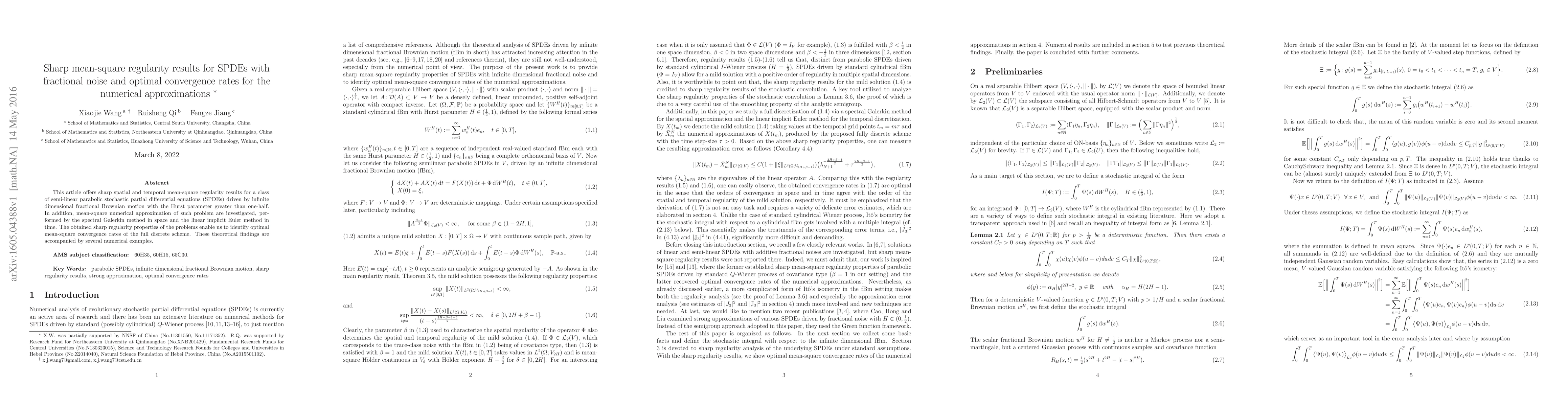 This paper presents sharp mean-square regularity results for semi-linear parabolic SPDEs driven by fractional noise, and investigates optimal convergence rates for spectral Galerkin and linear implicit Euler numerical approximations. The study concludes with numerical examples validating the theoretical findings.