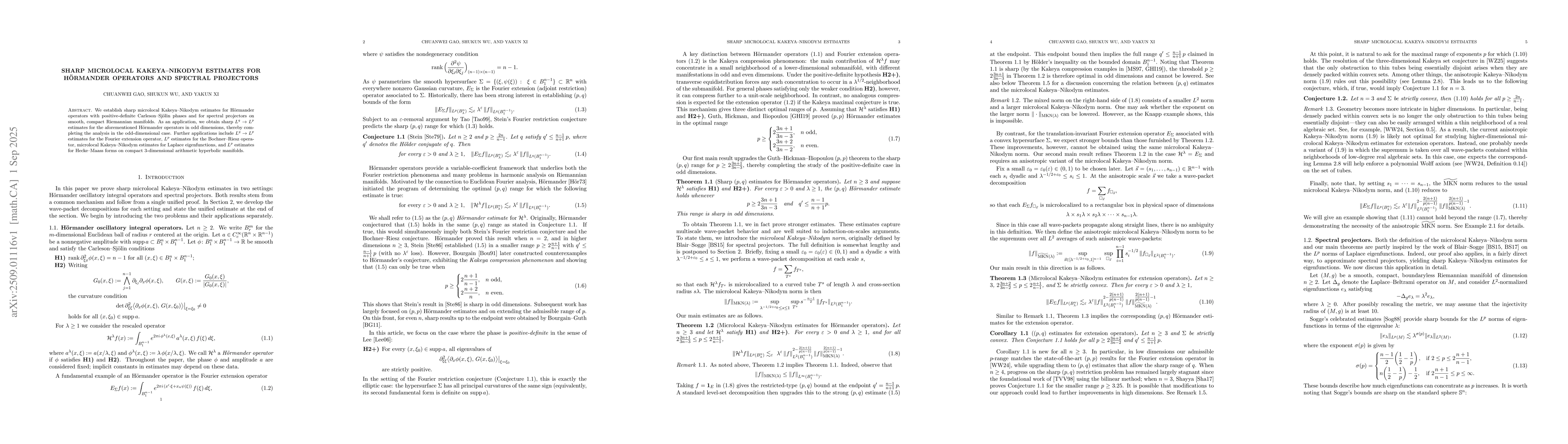 We establish sharp microlocal Kakeya--Nikodym estimates for H\"ormander operators with positive-definite Carleson--Sj\"olin phases and for spectral projectors on smooth, compact Riemannian manifolds. As an application, we obtain sharp $L^q\to L^p$ estimates for the aforementioned H\"ormander operators in odd dimensions, thereby completing the analysis in the odd-dimensional case. Further applications include $L^q\to L^p$ estimates for the Fourier extension operator, $L^p$ estimates for the Bochner--Riesz operator, microlocal Kakeya--Nikodym estimates for Laplace eigenfunctions, and $L^p$ estimates for Hecke--Maass forms on compact $3$-dimensional arithmetic hyperbolic manifolds.