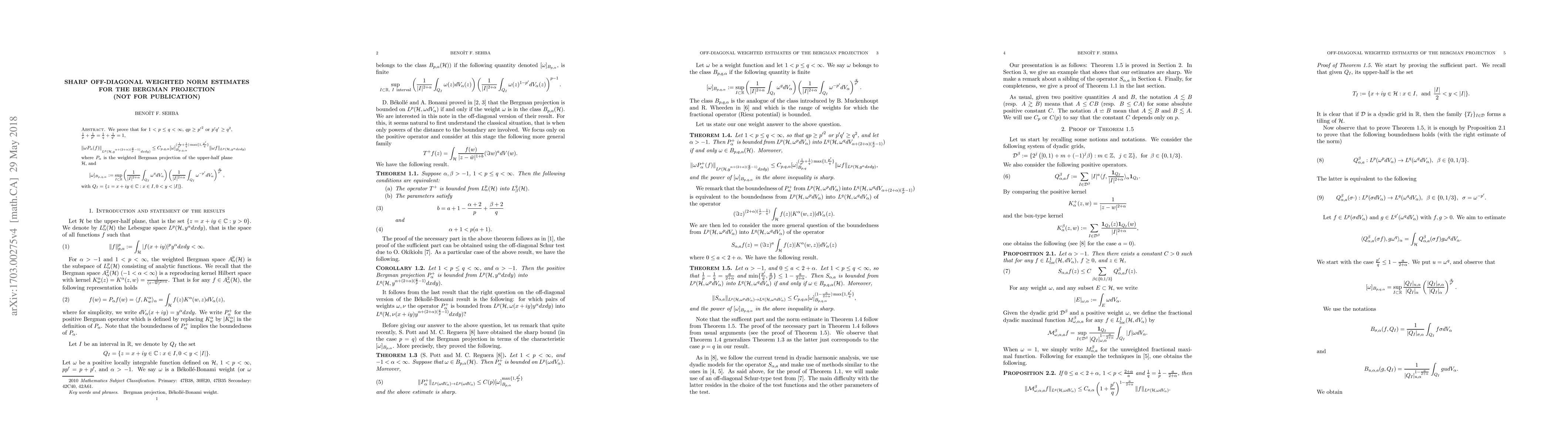 This paper proves a bound for the weighted Bergman projection in the upper-half plane, relating it to an $B_{p,q, heta}$ norm estimate with a sharp off-diagonal weight.