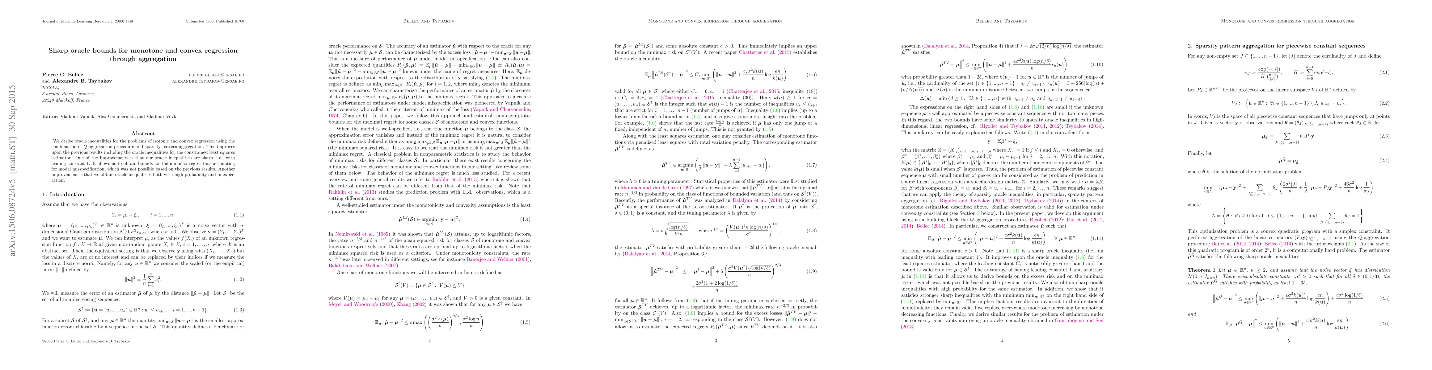 This paper presents sharp oracle inequalities for isotonic and convex regression using $Q$-aggregation and sparsity pattern aggregation, improving upon previous results. The inequalities are sharp with a leading constant of 1, enabling bounds for minimax regret and accounting for model misspecification.