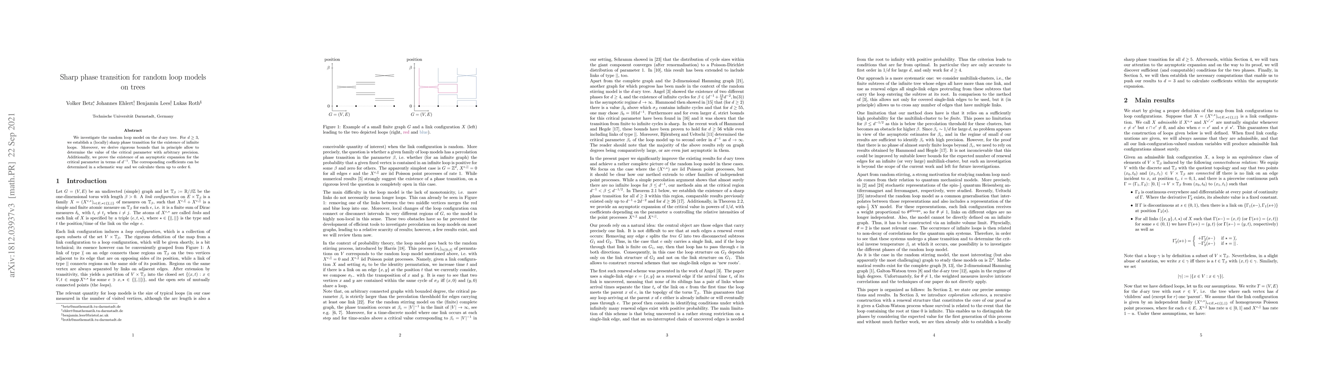 Researchers found a sharp phase transition in random loop models on trees for d >= 3, where infinite loops exist and can be precisely determined using rigorous bounds. The critical parameter's value is also asymptotically expanded with coefficients that can be calculated up to order 6.